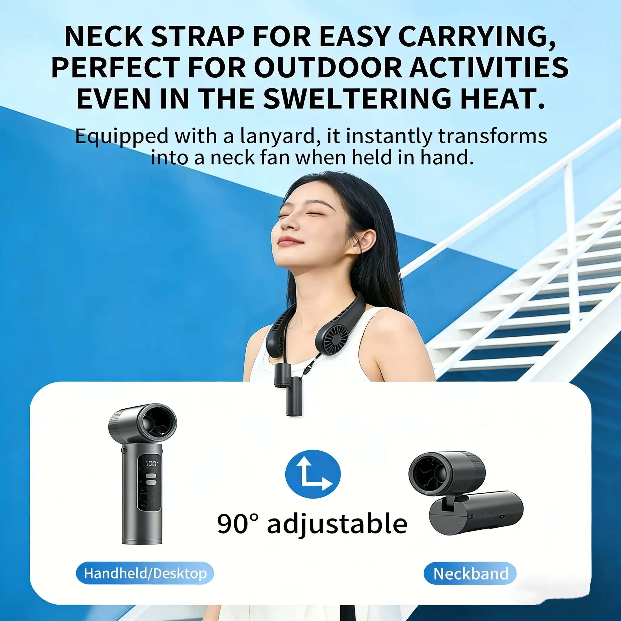 2026 New High-Speed Mini Handheld Fan, 90° Adjustable, Type-C Charging, Digital Display, Portable Neck Fan, Outdoor Travel Cooling Tool