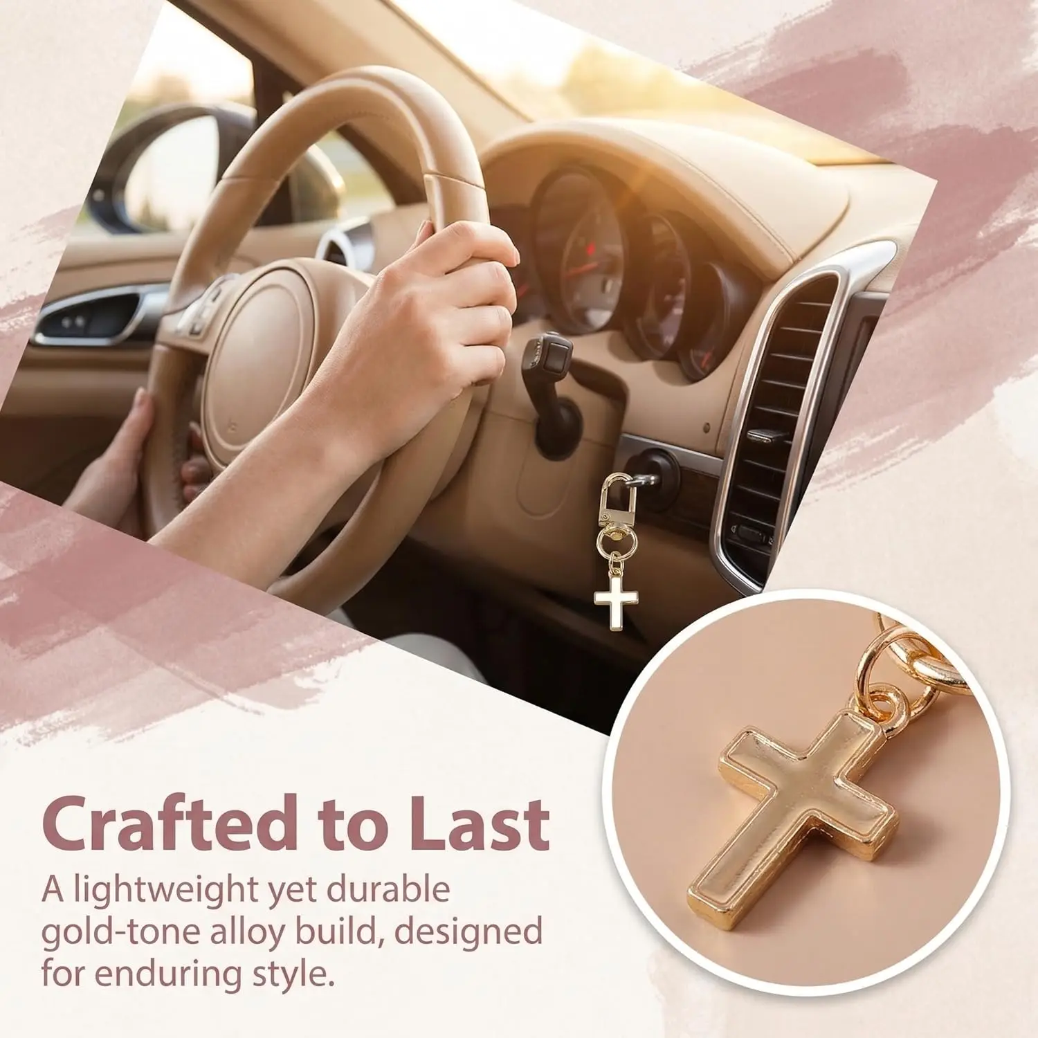 Premium Material: Mae om premium alloy with a shiny gol coating, the gol cross keychain is urable, lightweight, an embellishe with elegant white, black, an pink accents for a sophisticate look