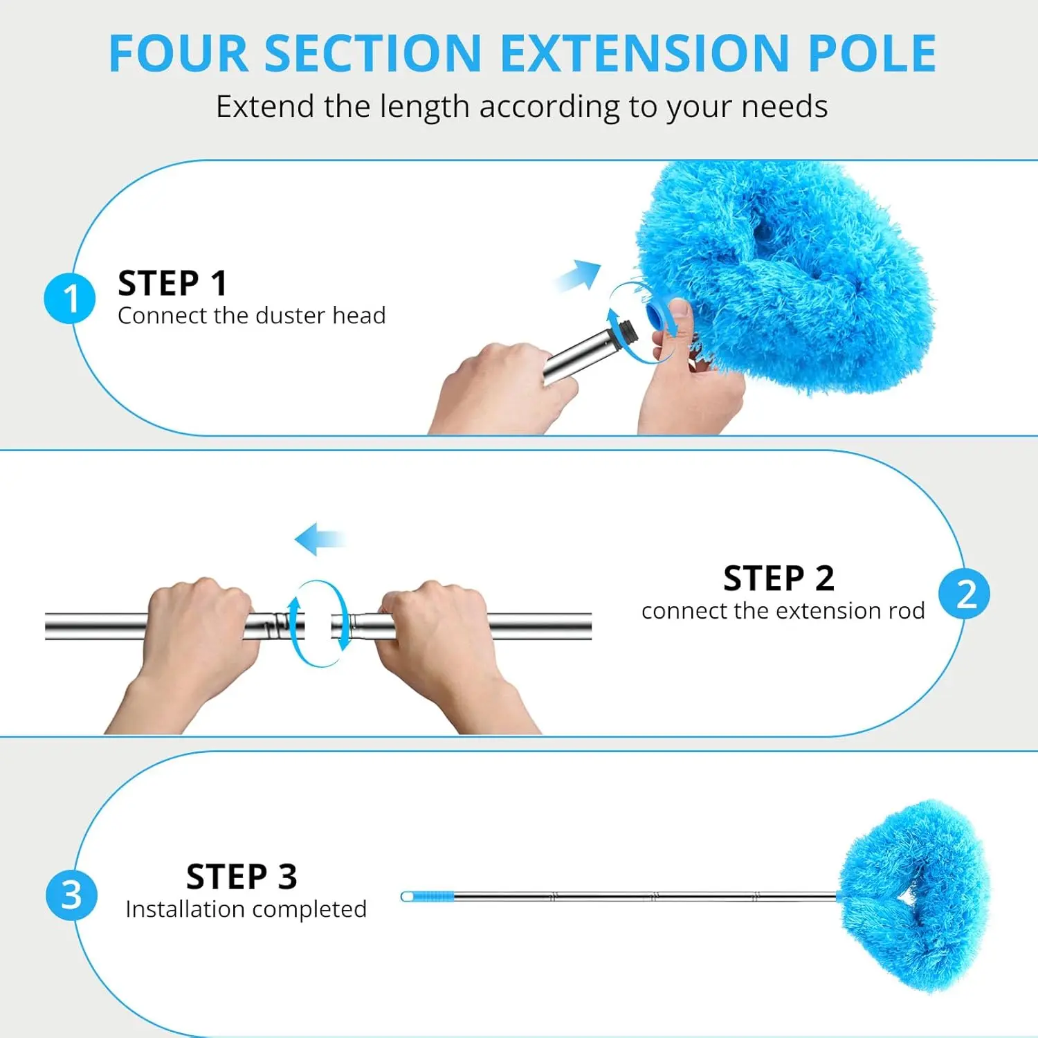 This Microfiber Ceiling Fan Duster is designed to easily trap dust from both sides of fan blades, preventing it from falling all over your room. With its extendable pole (13 to 47 inches), you can reach high ceilings safely — no ladder needed!
