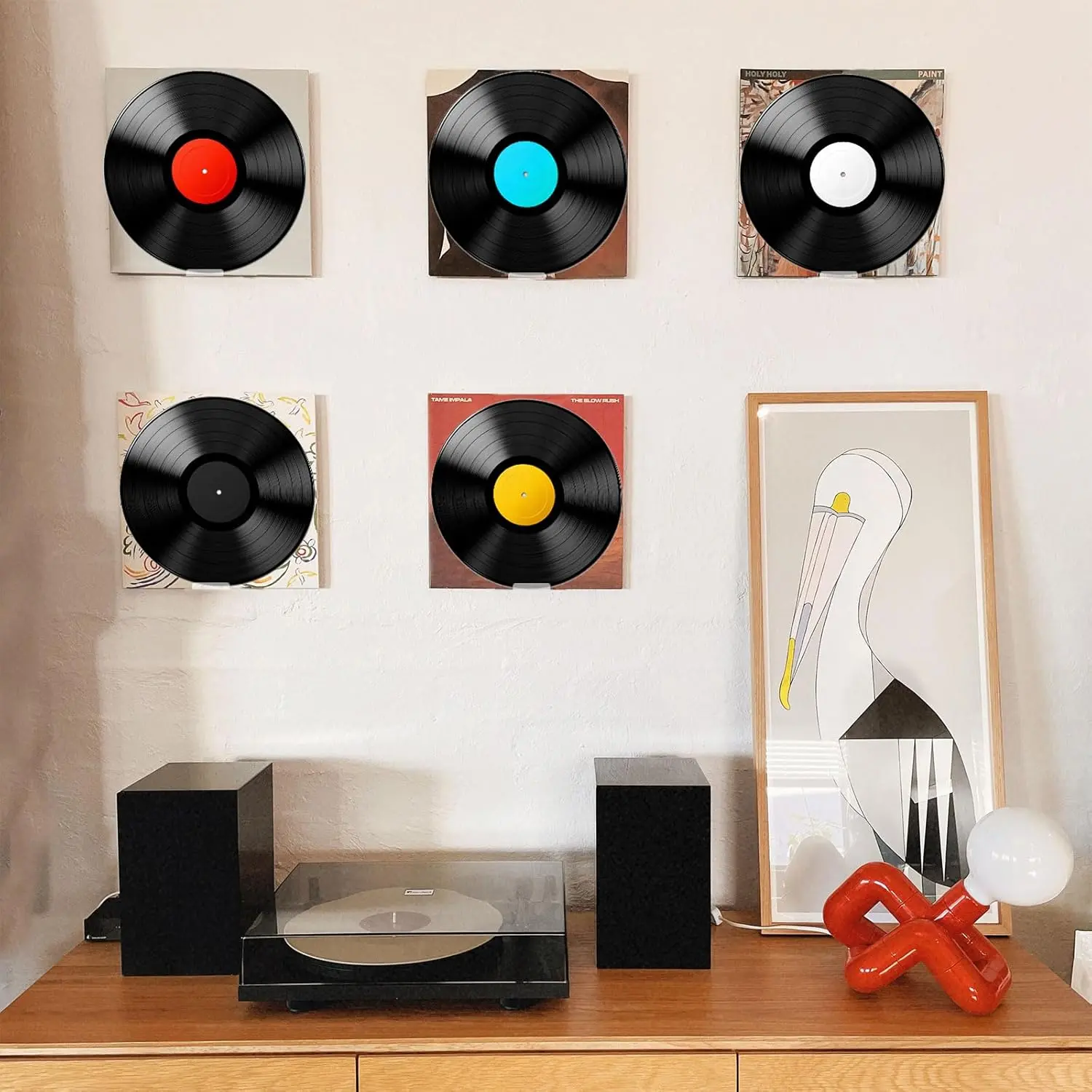 Great look and doesn’t steal aesthetic of the records, perfect for displaying vinyl records