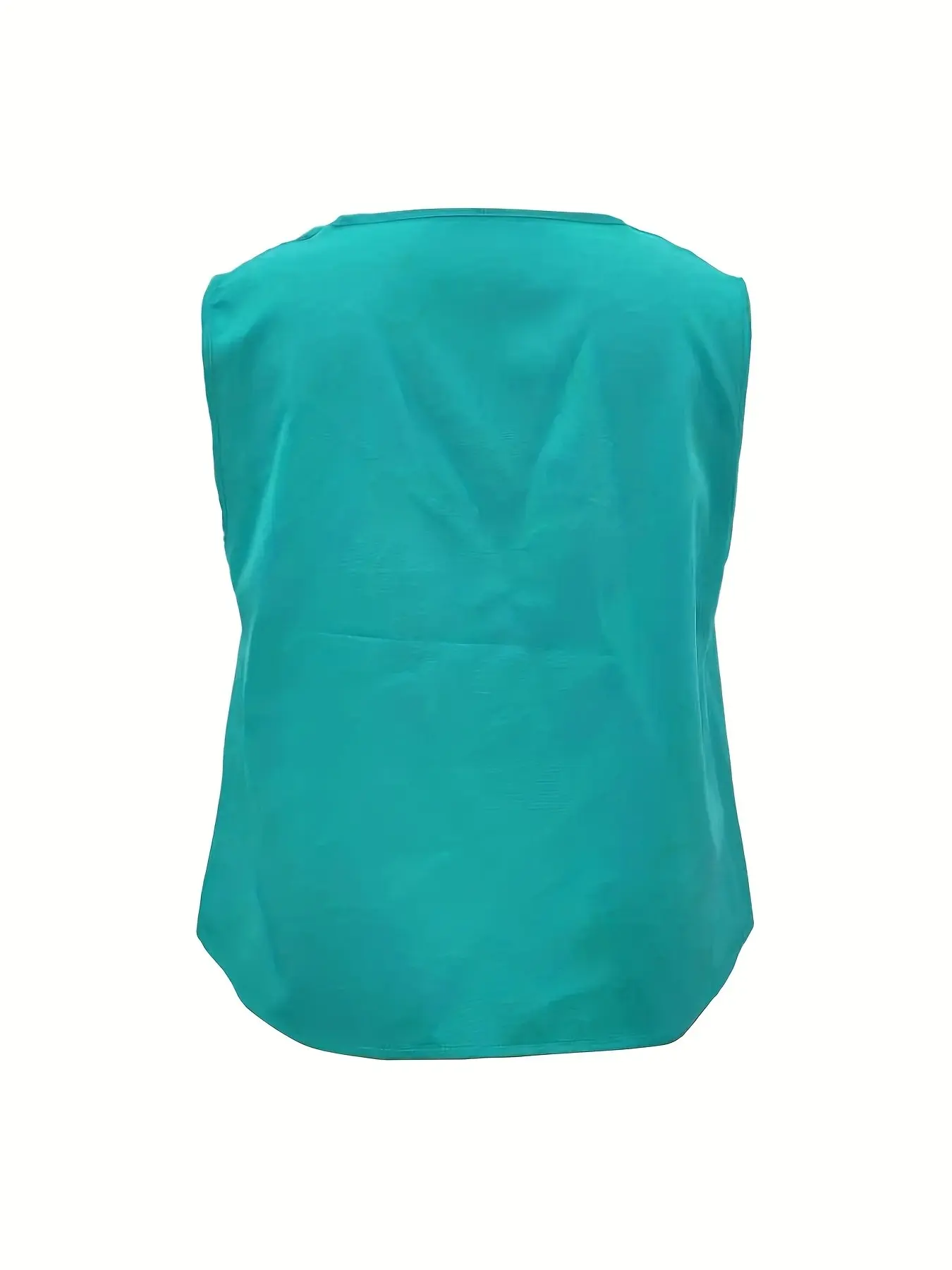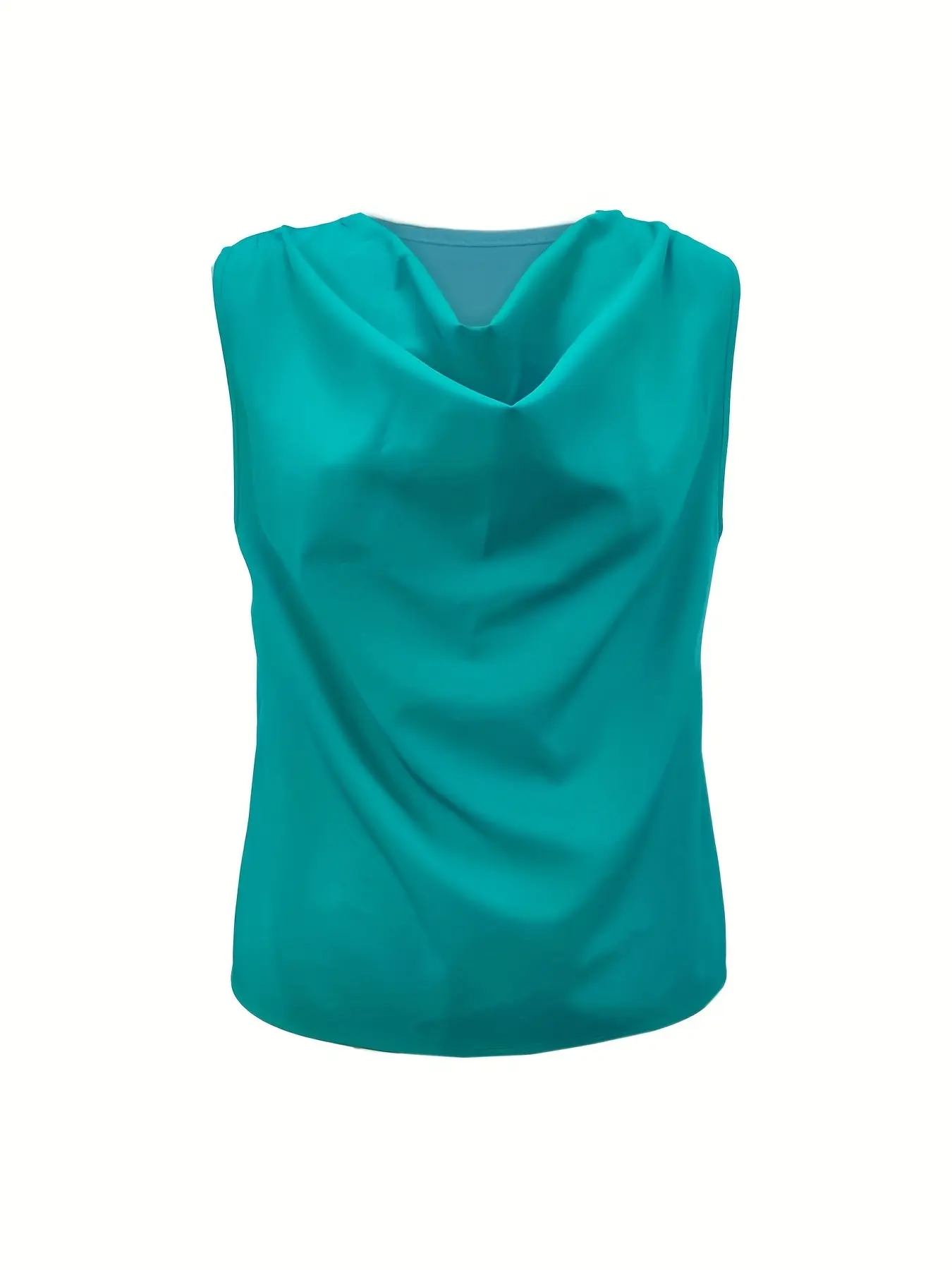 Women's Sleeveless Cowl Neck Tank Top 2025, V Neck Draped Casual Blouse, Elegant Office Workwear, Trendy Daily Wear, Chic Streetwear, Versatile for Brunch, Date Night, Vacation, Business Casual, Layering Top, Women's Teal All-Match Dressy Casual Sleeveles