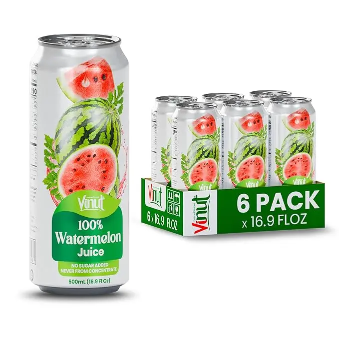 Enjoy the light, crisp taste of real watermelon with Vinut 100% Watermelon Juice. Made from pure fruit juice with no added sugar and never from concentrate, this drink delivers a naturally refreshing flavor that’s perfect for hot days and everyday hydration.