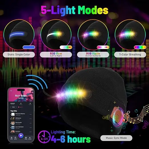 Stand out and stay warm with this RGB LED Bluetooth Beanie — the ultimate combination of style, music, and tech!