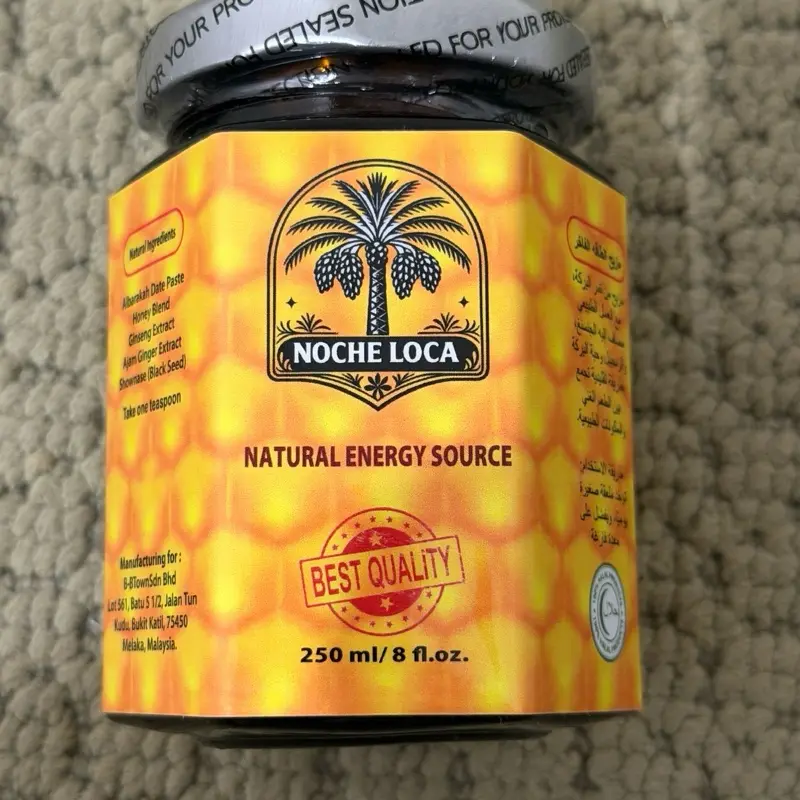 Noche Luca Tongkat Ali Organic Honey Blend is a unique blend of Yunani herbs & essential oils. It offers a natural energy source in a date paste flavor. Perfect for those seeking a natural energy boost.