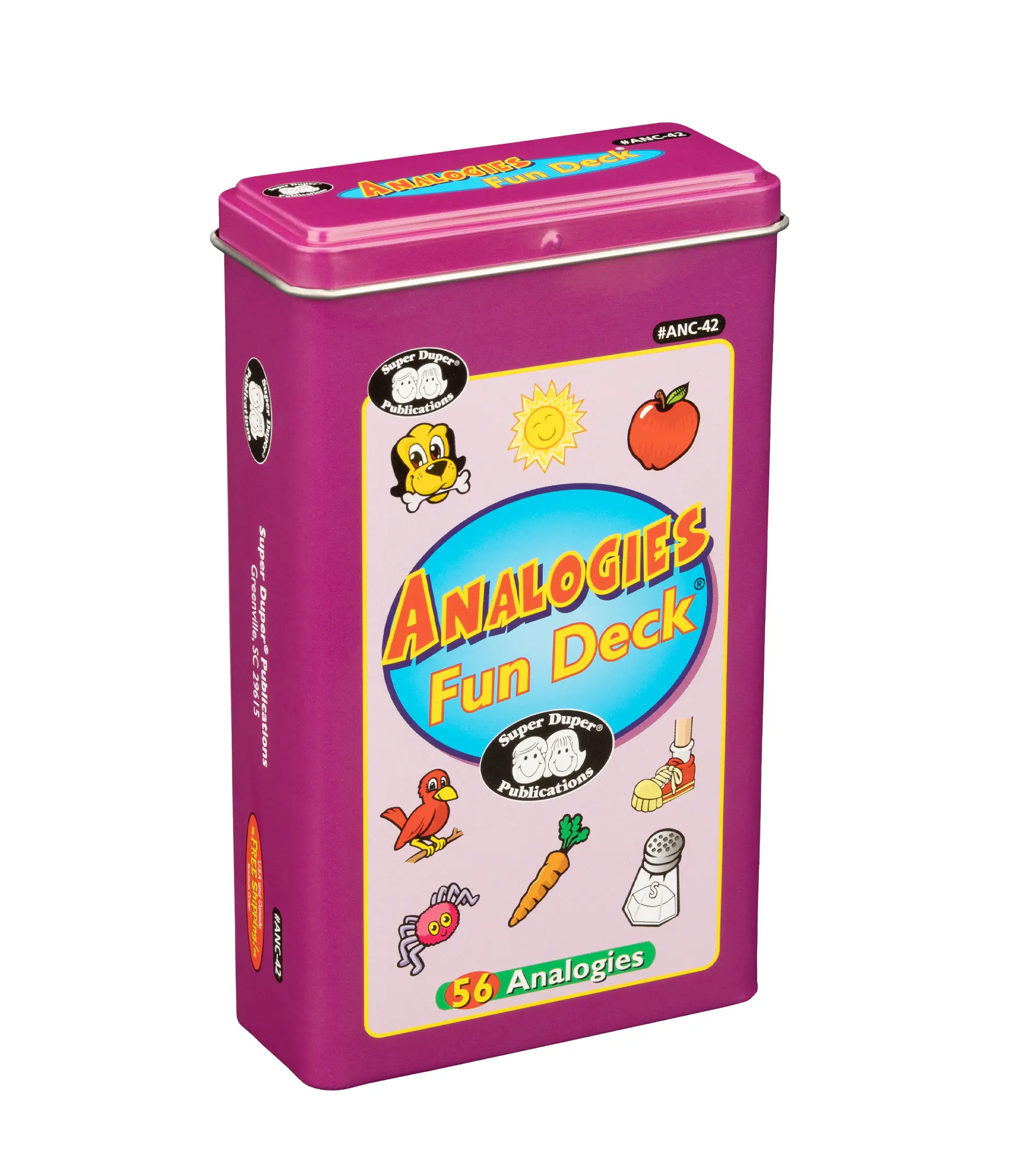 The Analogies Fun Deck is a great way for your students to learn early verbal reasoning skills, vocabulary, and concepts such as part/whole, categories, opposites, function, and similarities and differences.