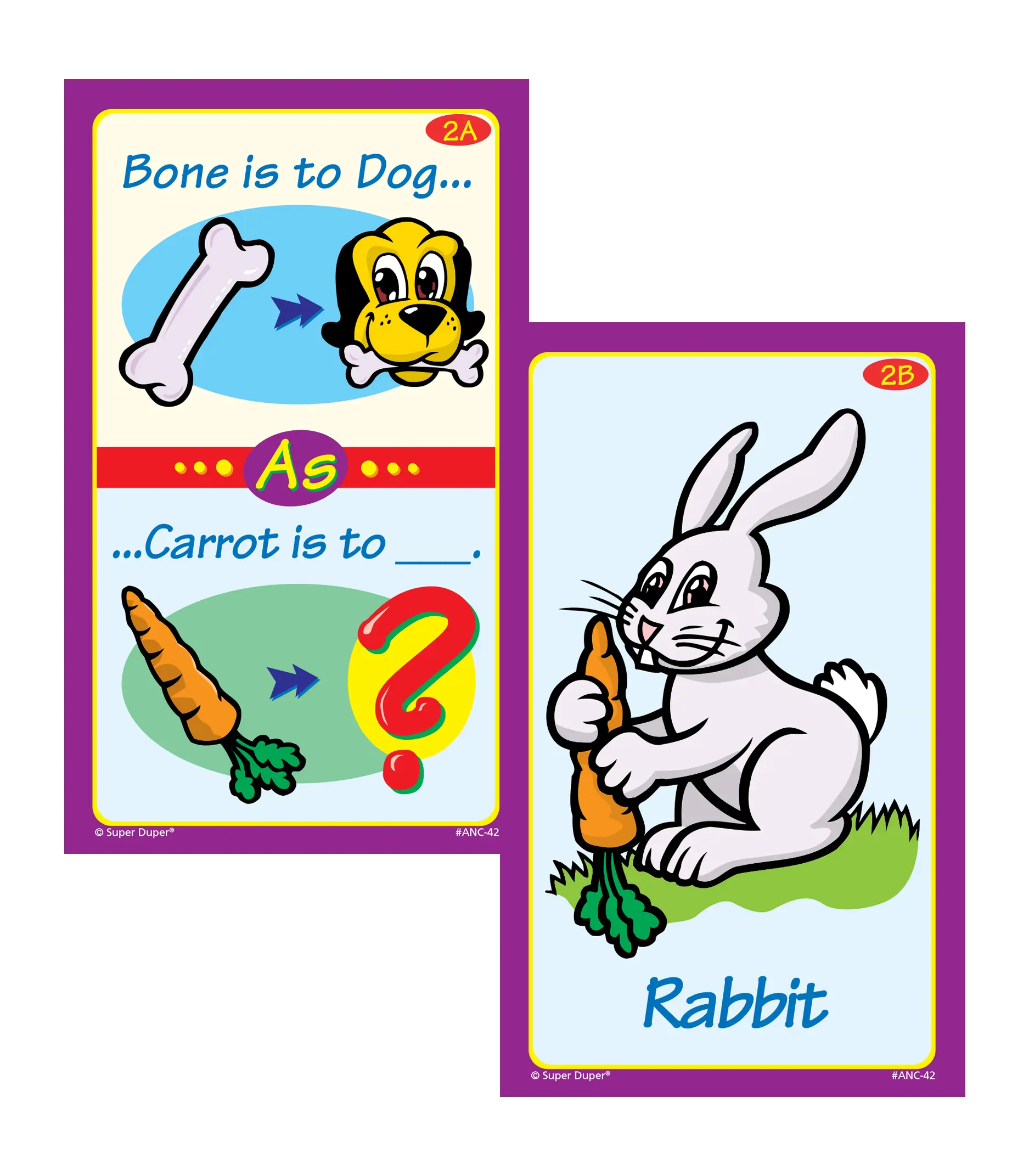 ·56 big, colorfully illustrated analogy cards (28 pairs, 3" x 5")