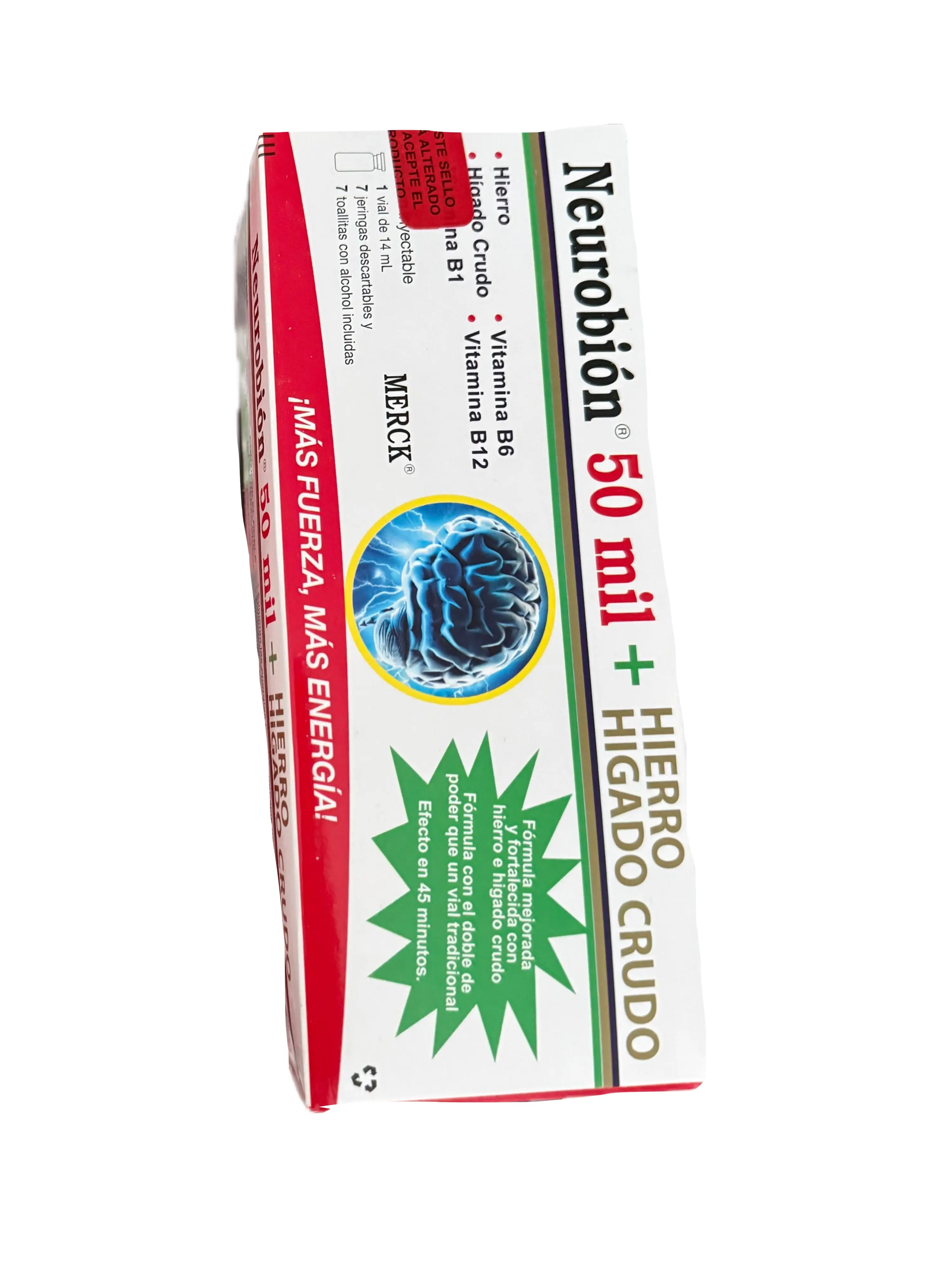 NUEVA Vitamina Neuro de 50 + Hierro + Higado Crudo - Formula Original - Paquete de 7 - Iron and Vitamin B12 Supplement