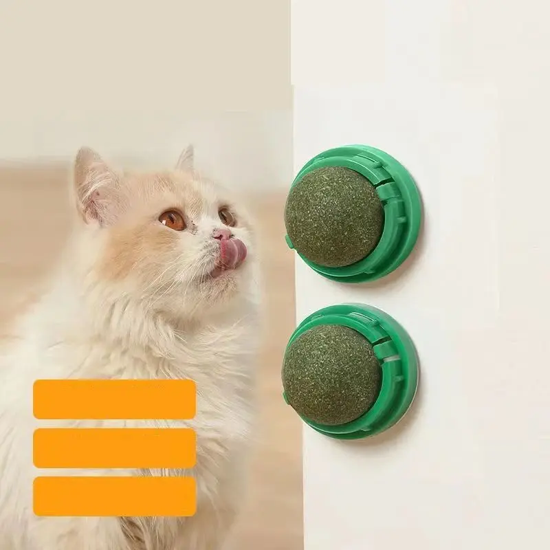 The Catnip Cat Wall Stick-on Ball Toy Scratchers Treats Healthy Natural Removes Balls to Promote Digestion Cat Grass Snack