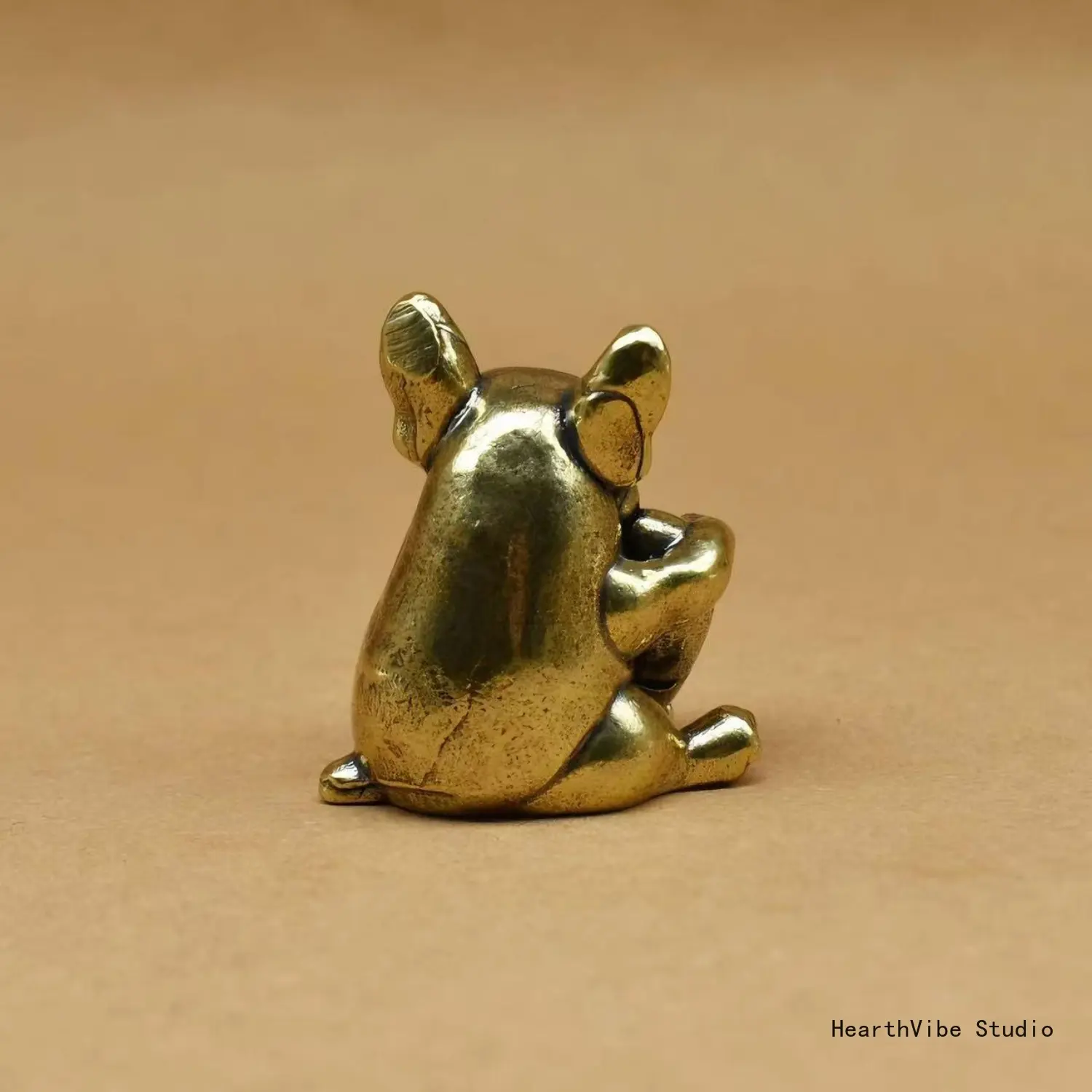 Brass Pug Statue Holding a Heart — A Fun, Trendy Puppy Tea Pet and Living Room Ornament