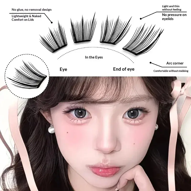 No Glue Self-Adhesive False Eyelashes Natural Curled Doll Eyes Thickening l Voluminous Winged Individual Lashes For Daily Use 10-12mm