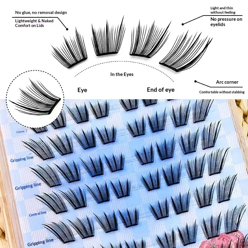 No Glue Under Eyelashes Cluster -Lower Lashes, Natural Volume,Segment Lashes, Easy Apply for Beginners, Anime Eye Lashes,Easy To Remove,4-8mm