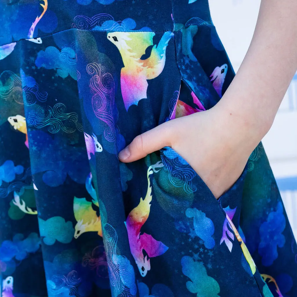 Adult "Reign Clouds" Rainbow Amphiptere Dragons Super Twirler Dress with Pockets