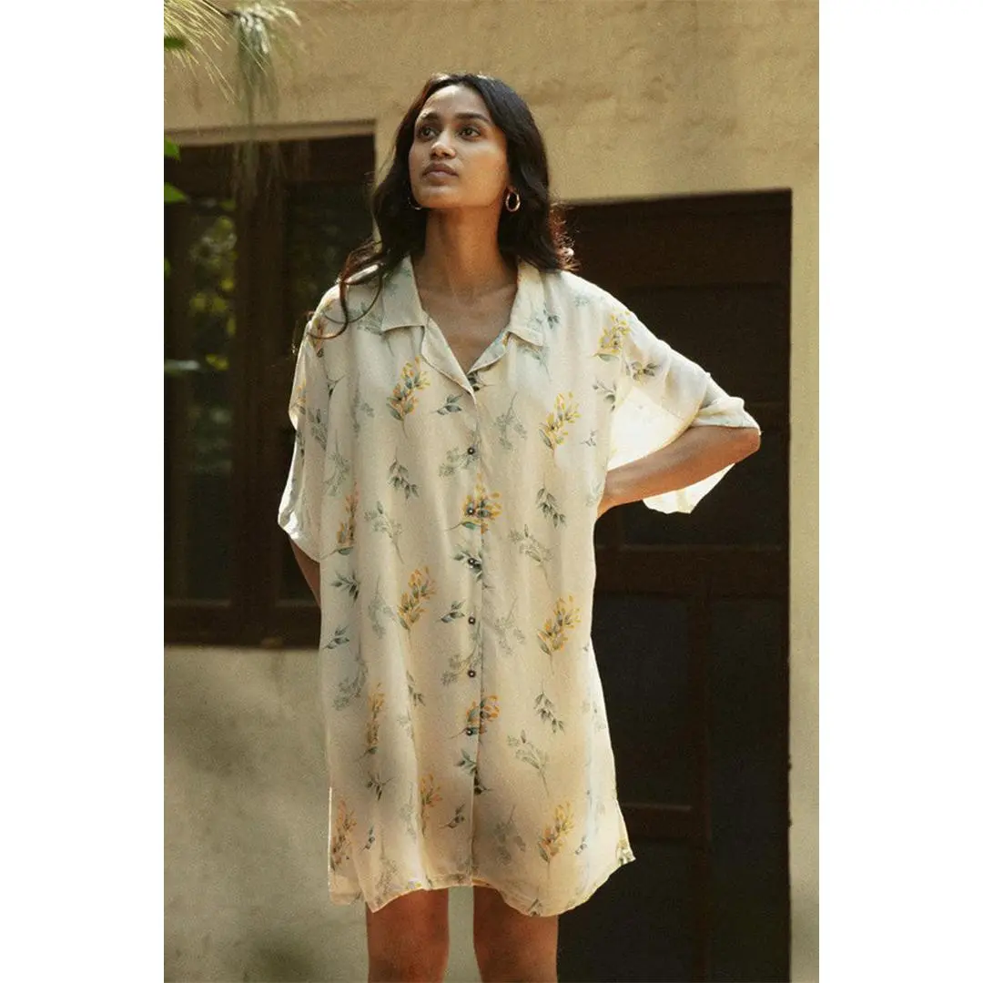 A boxy, relaxed fit shirt dress that you can wear over jeans or belt it over a swimsuit and use it as a cover up.