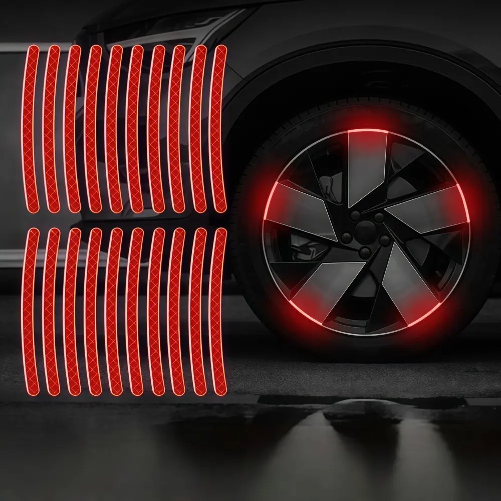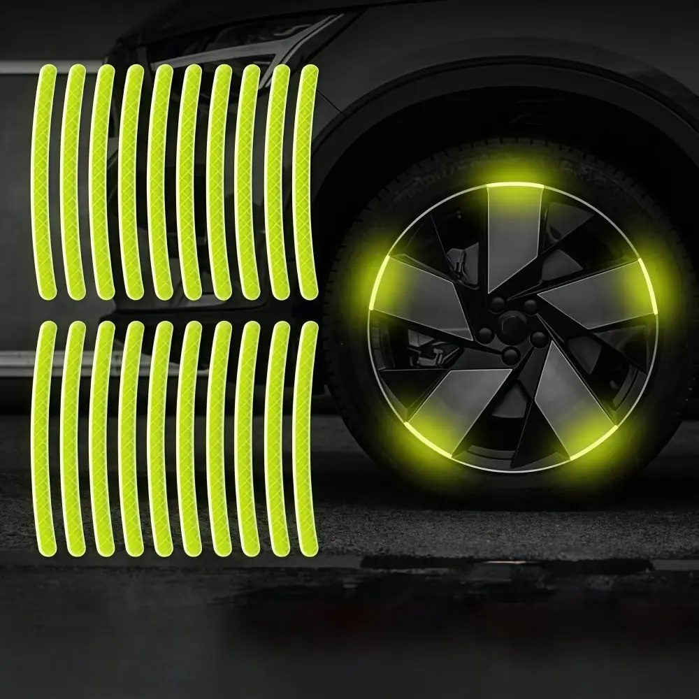 Car Wheel Reflective Stickers, Tire Warning Stickers, 3D Racing Hubcap Stickers, Anti-Collision Tape, Creative Motorcycle Decals, 20 Pieces
