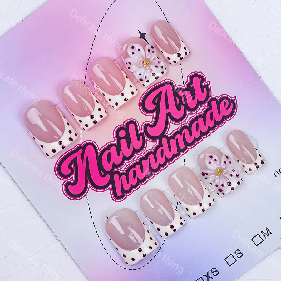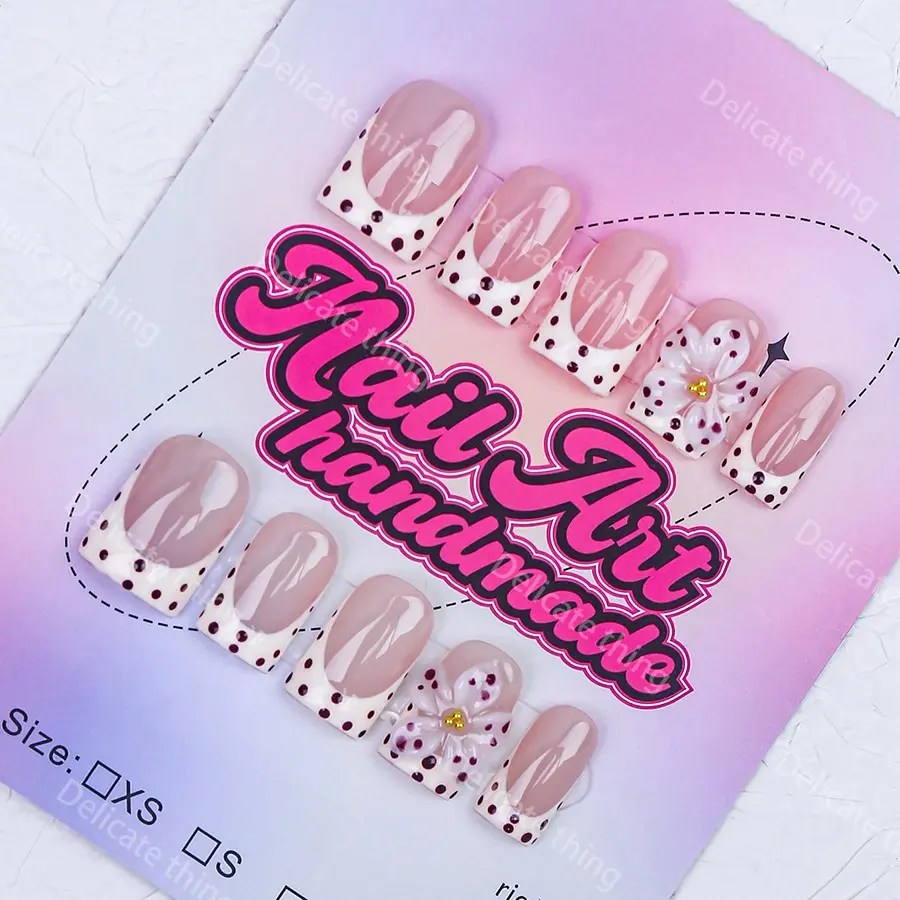 4. Delicatething Y2K Style Nail Set, Handmade Square Duckbill Nails, 4 Sizes XS S M L, Perfect Gift for Girls, Includes Jelly Glue Crystal Stick