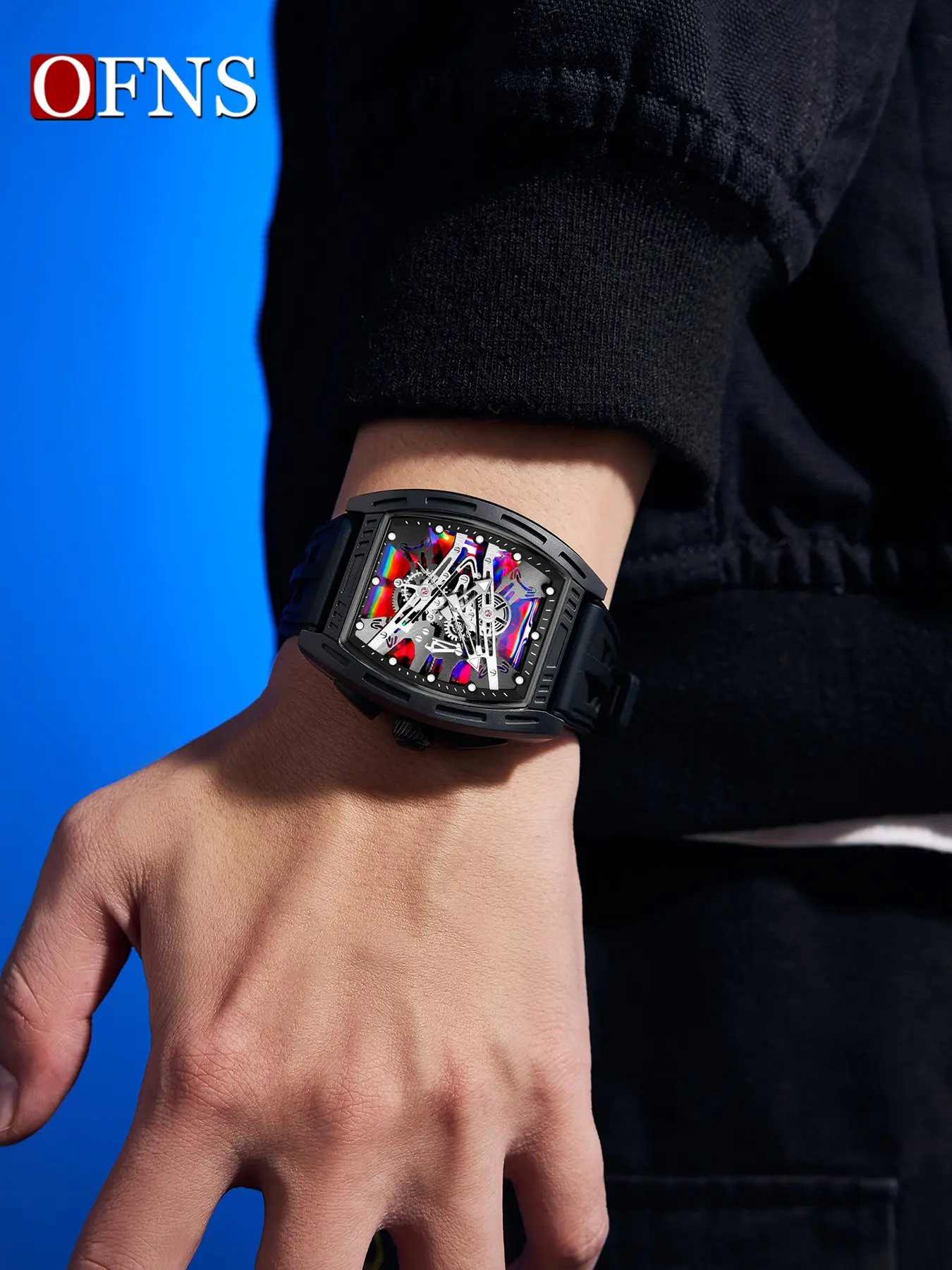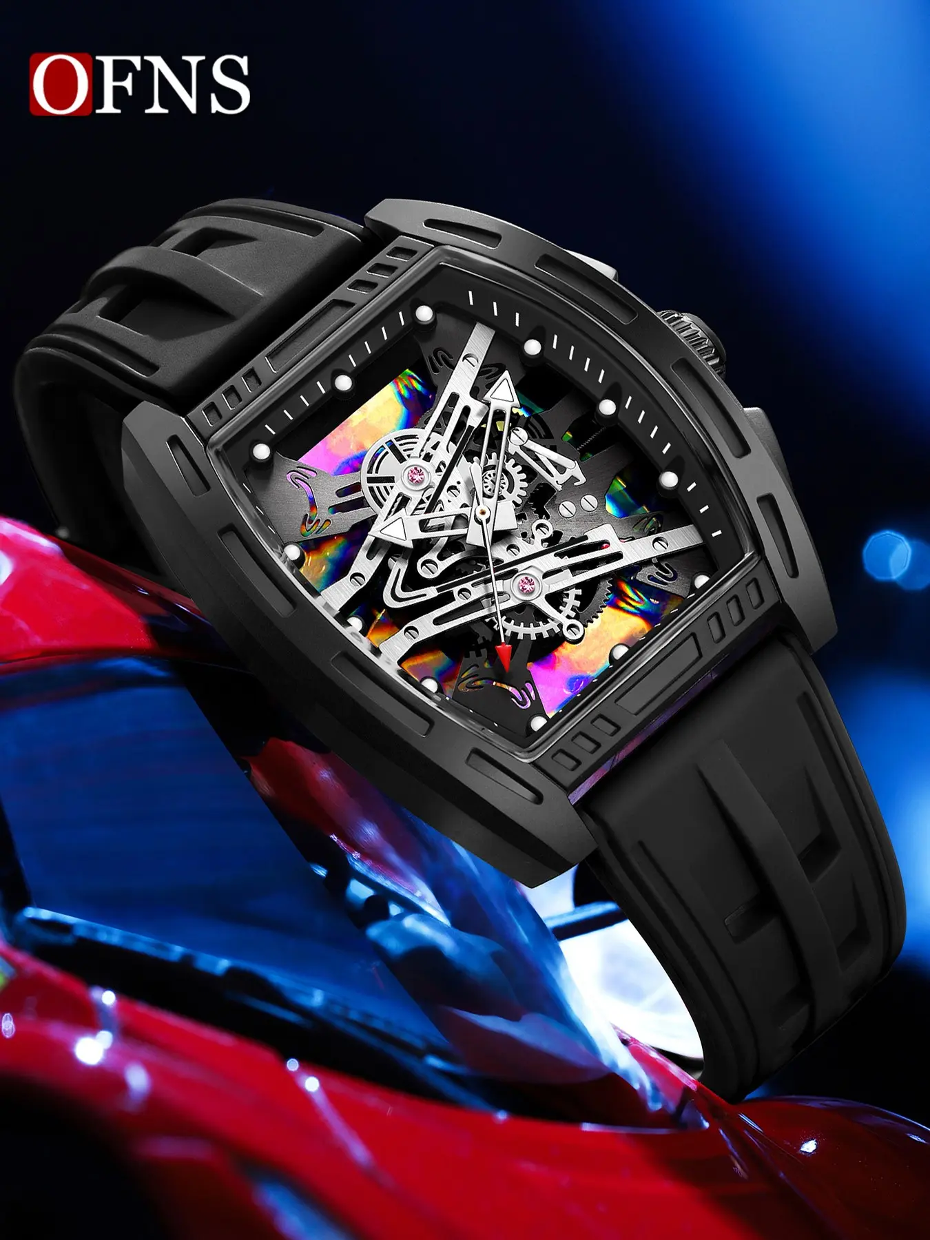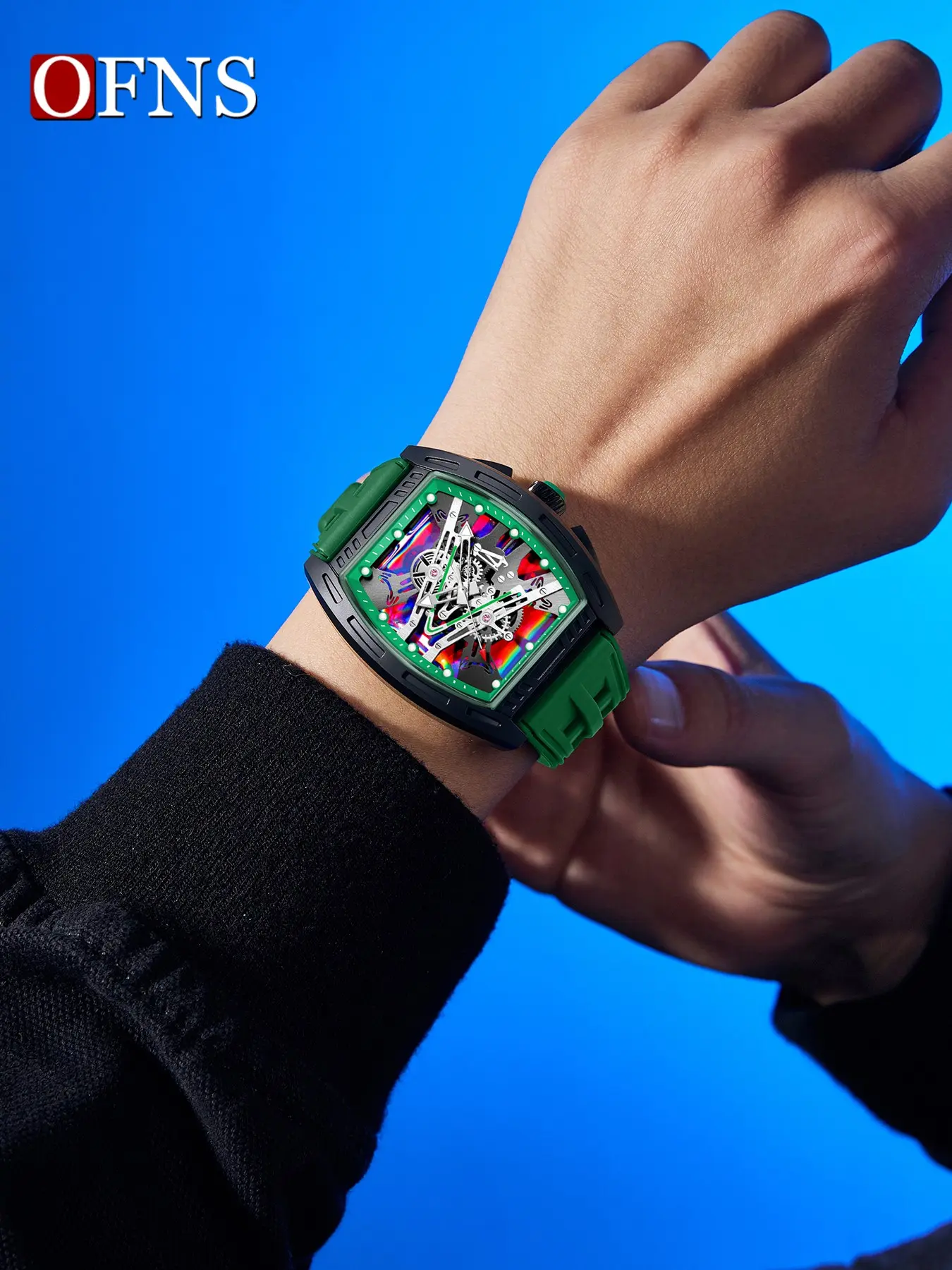 1Pcs Brand Men's Barrel shape Watches Waterproof, Trendy Retro Style Watch for Man,Luxury Male Quartz Wristwatch, Silicone strap/ABS plastic case, Fashion Trend Men Business Watch, Holiday Birthday Gifts