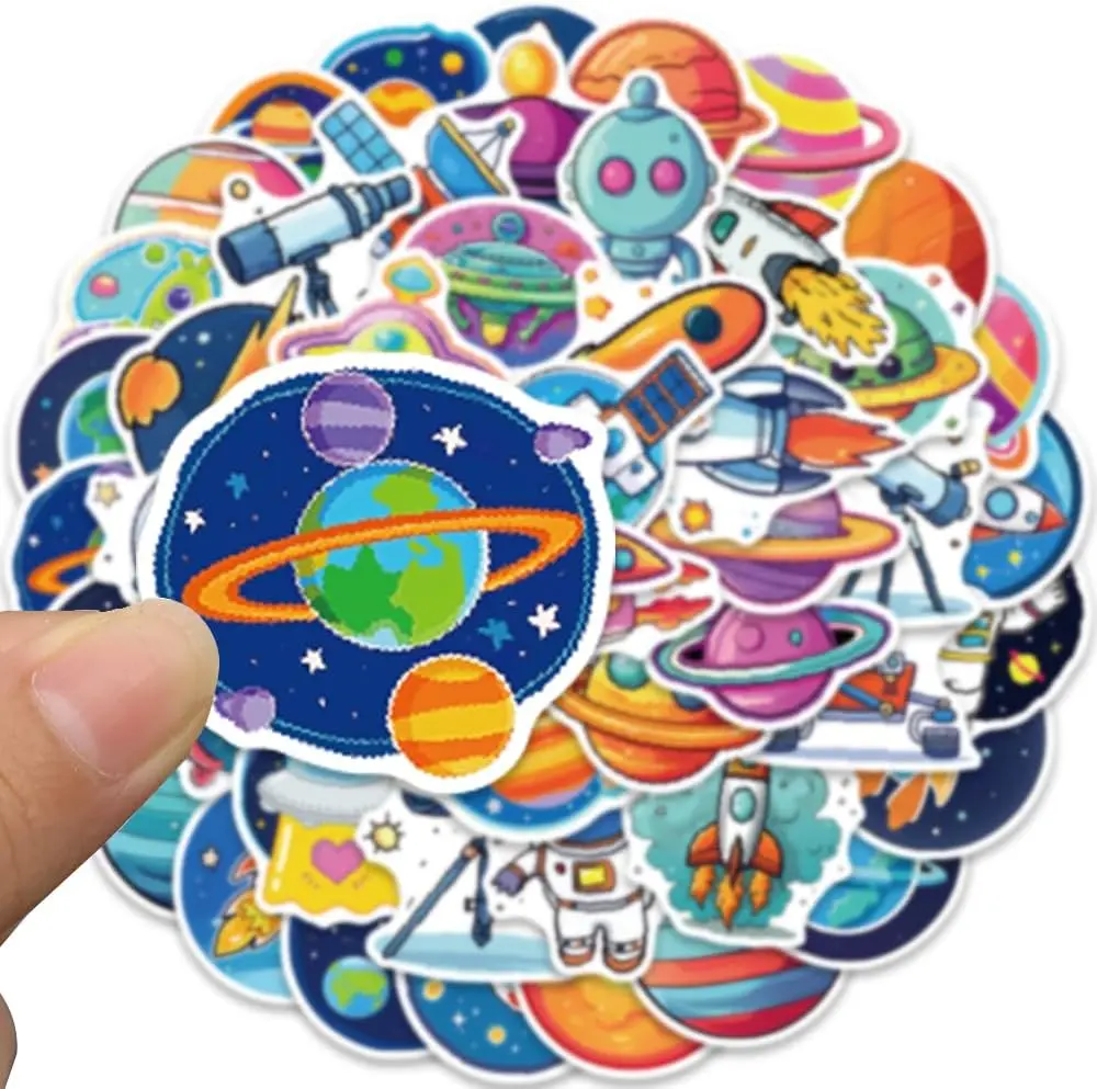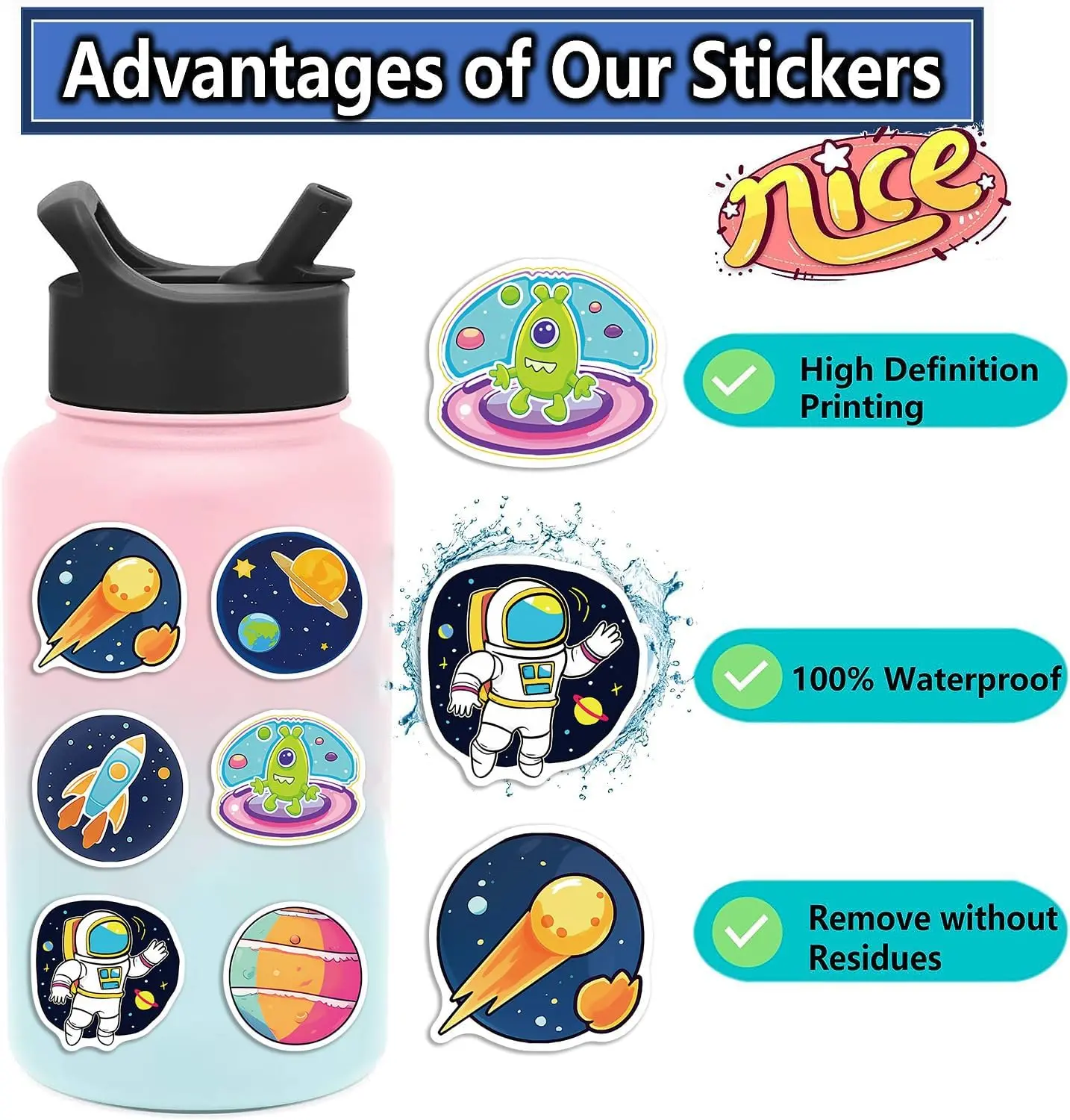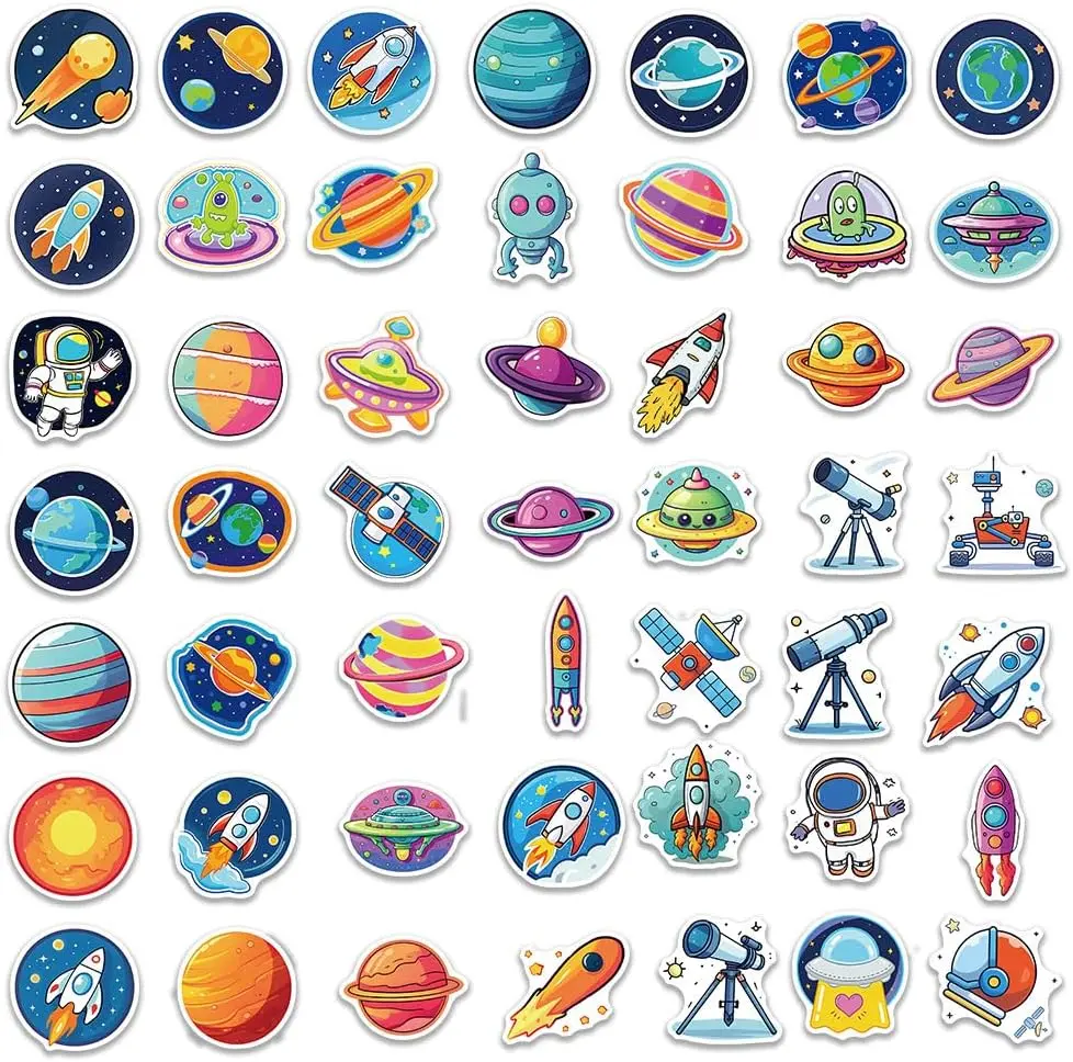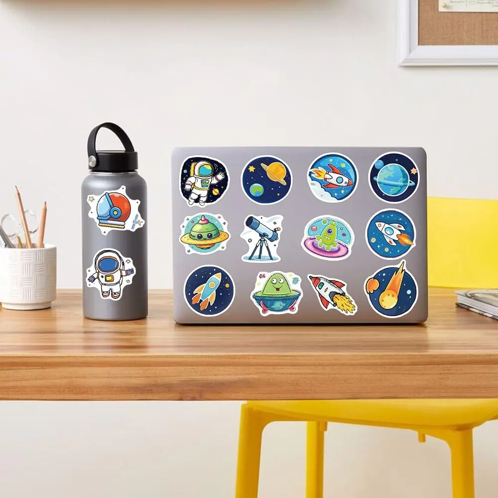 ·✔ Cute Space tickers - This stickers pack contains 50PCS different stickers specially designed for Astronaut Spacecraft Planet Alien. Each aesthetic sticker is carefully designed and crafted with high printing precision ranging in size from 1.5 to 2.5 inches. Cute stickers can bring a lot of fun to your life.