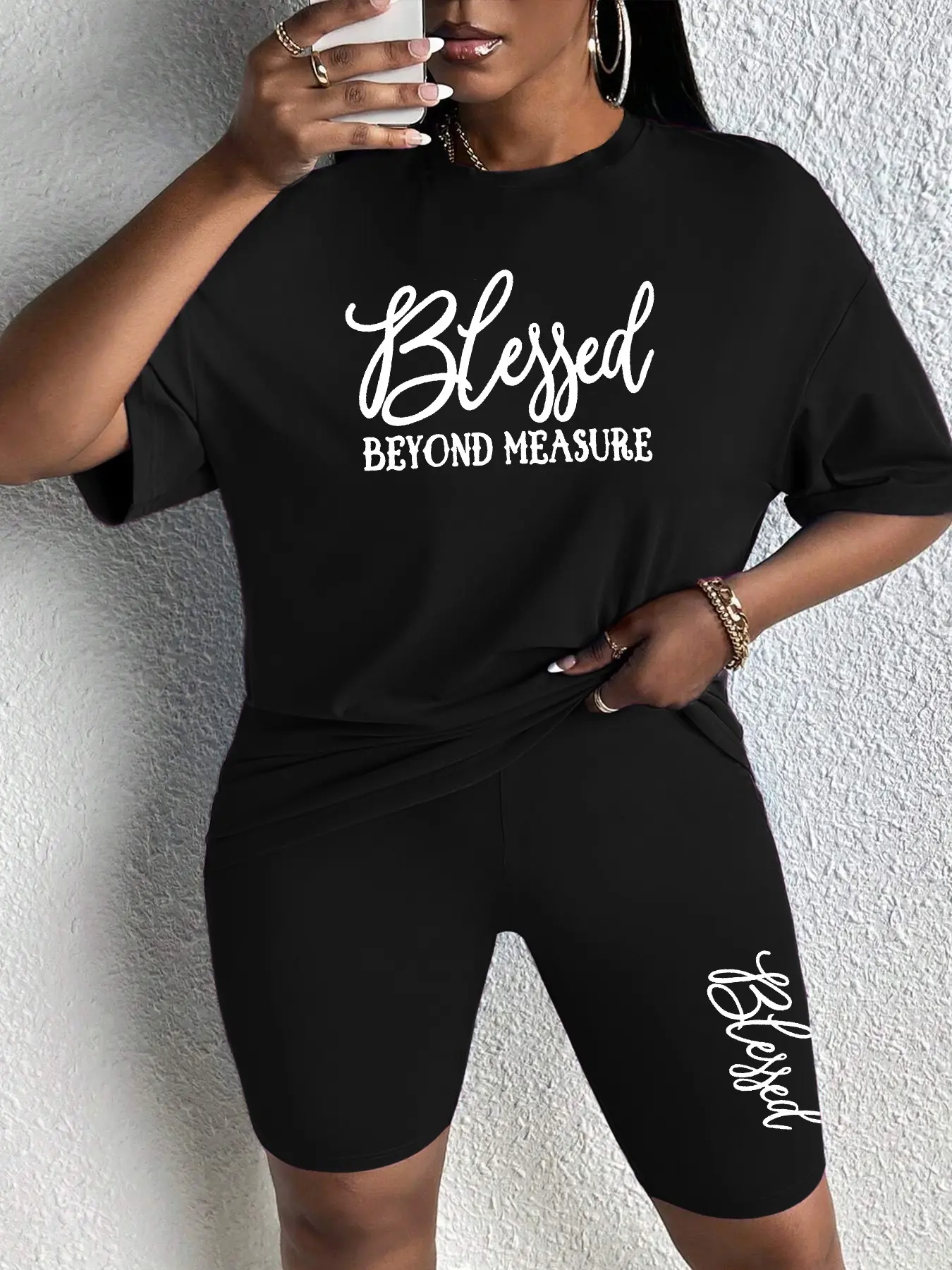 Summer Women's Sleepwear Set, Casual Round Neck Short Sleeve Letter Print Pajamas, Comfortable Home, Elegant Bike Pants