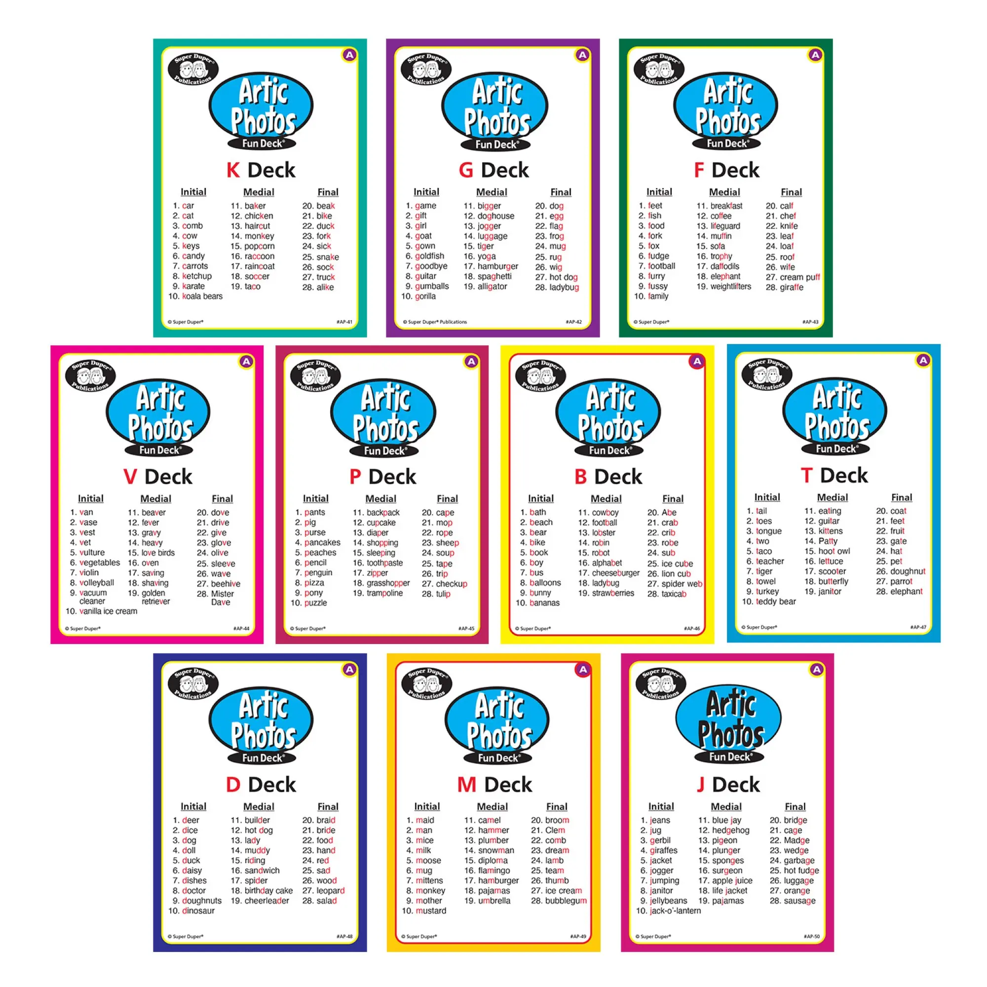 Artic Photos Fun Decks Bundle 2 Speech Therapy Cards Real Life Photo Articulation Set 10 Decks 560 Cards Initial Medial Final Sounds SLP Classroom Language Learning Game Cards with Bonus Chips Travel Case and Storage Tins
