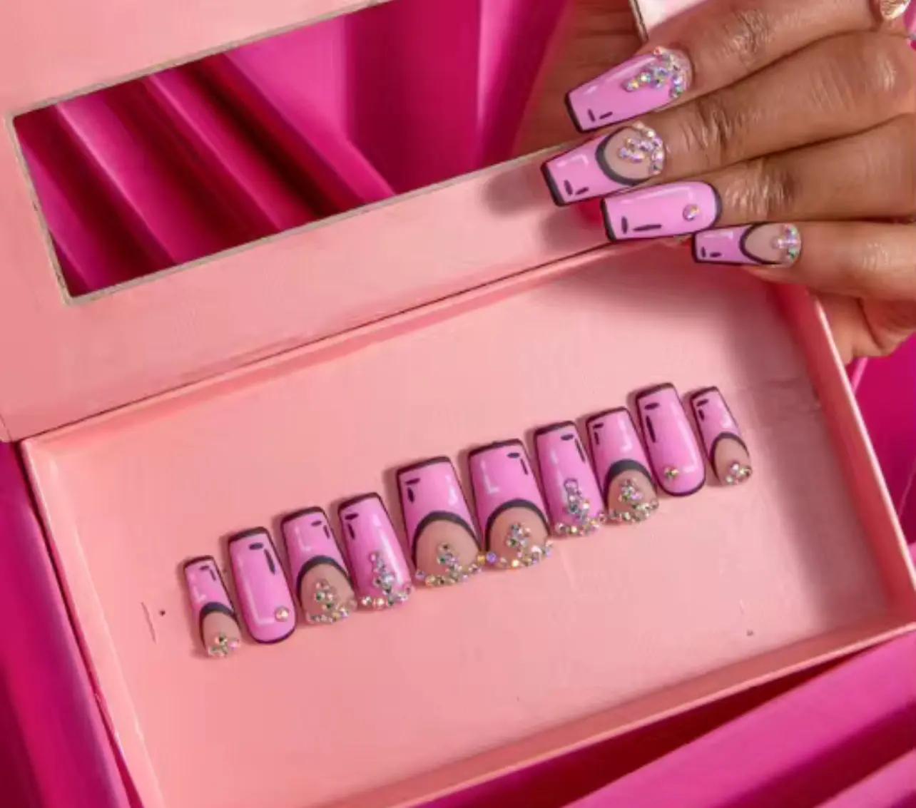 The Too DeFINE acrylic nails feature a vibrant pink 2D cartoon-inspired design, combining playful charm with a stylish finish. Perfect for making a bold statement, these nails are crafted to turn heads effortlessly.