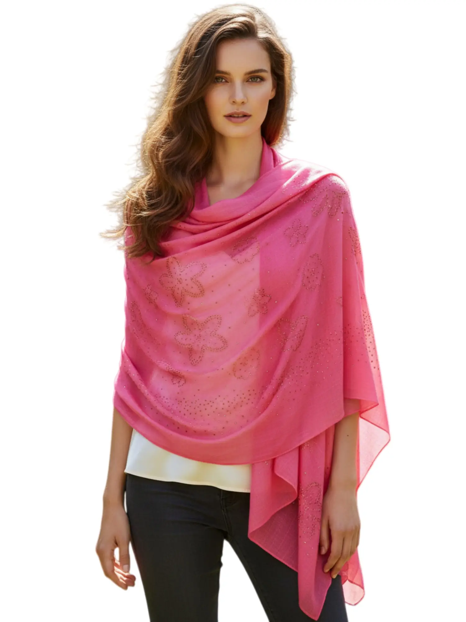 Women's Lightweight Scarf Shawls With Rhinestones, Large Size, Soft And Silky.