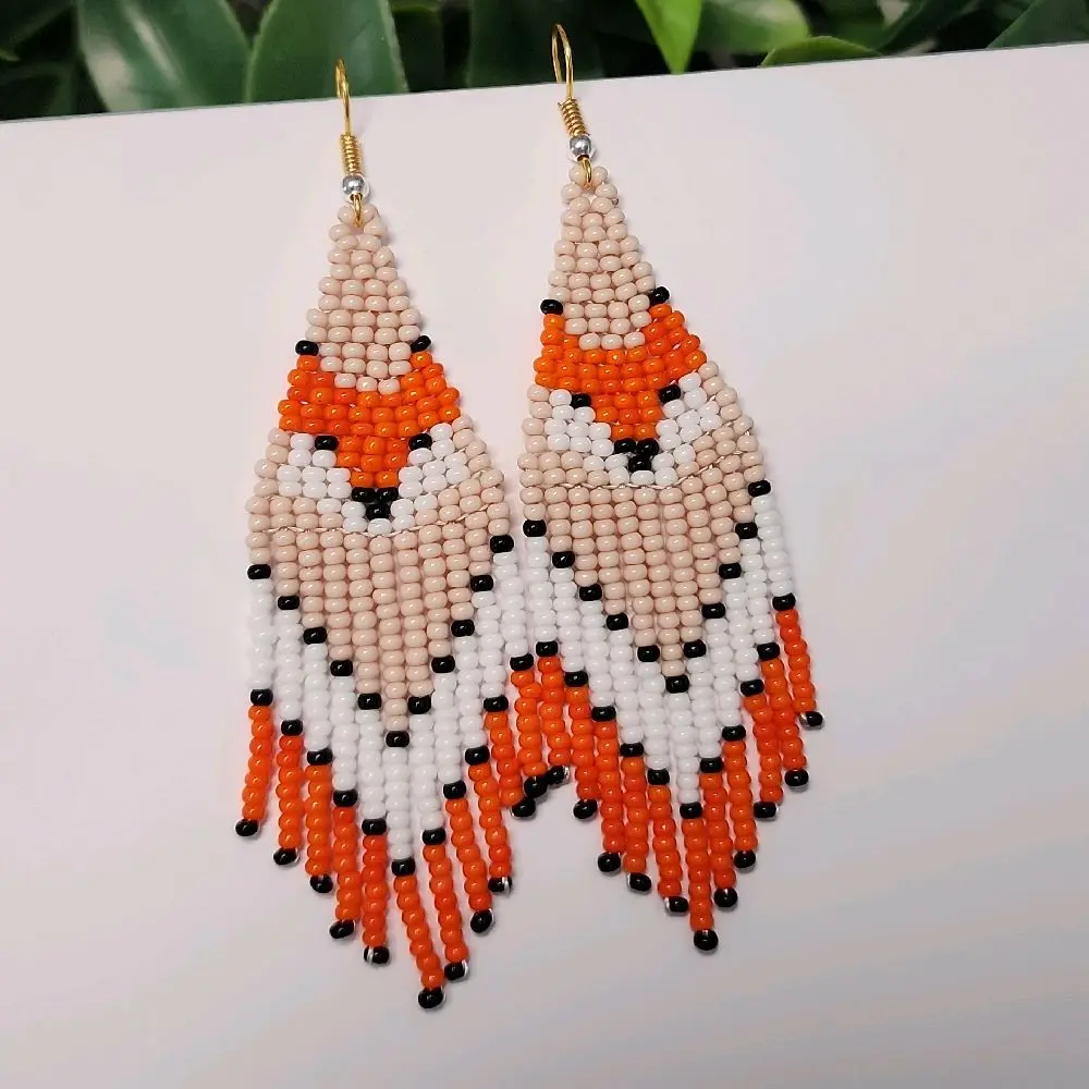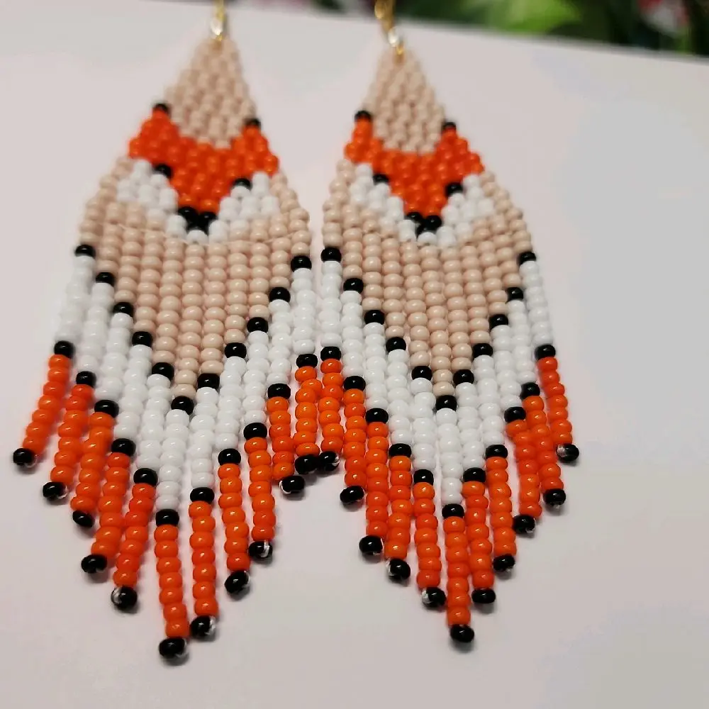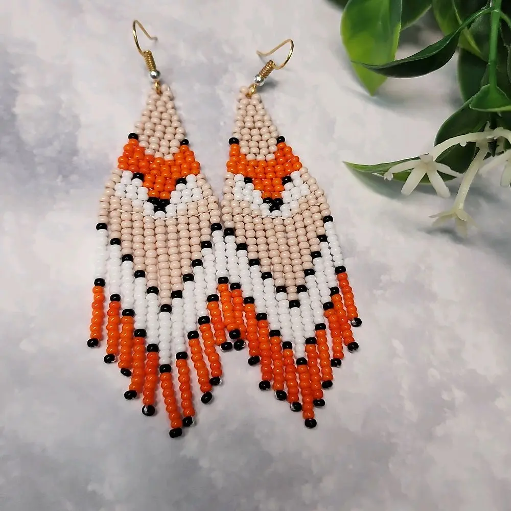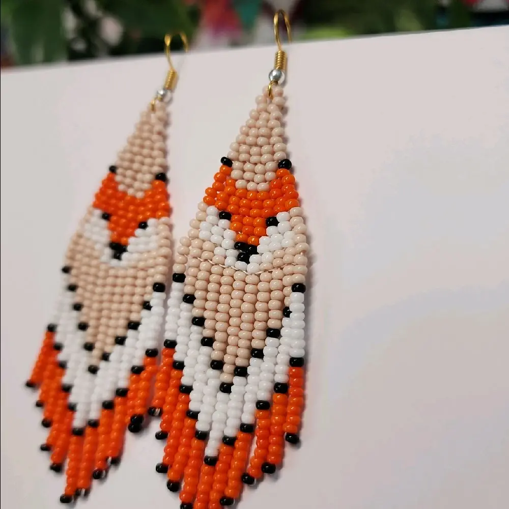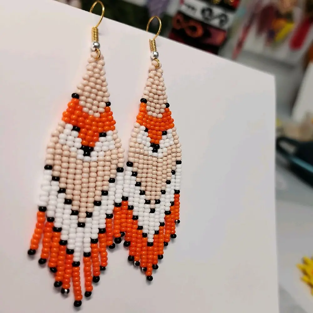 Beaded Earrings Fox Design made with Glass Beads Handcrafted Jewelry