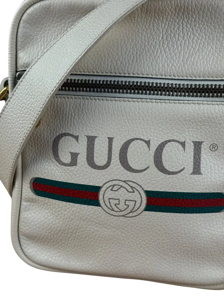 Pre-owned leather Messenger Bags Gucci White Grained Messenger Bag
