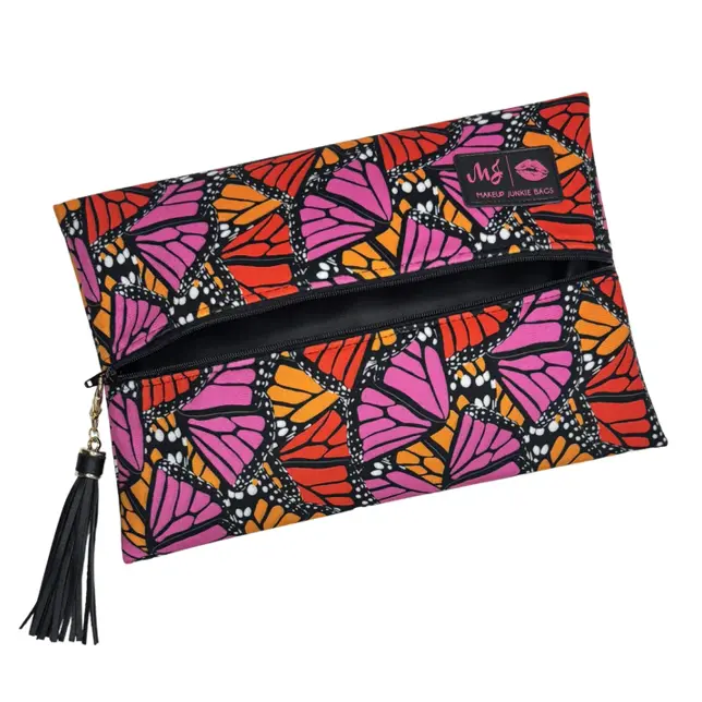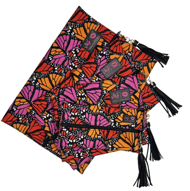 Handmade in Texas, the Monarch Muse bag is a game-changer. Its patented lay-flat design keeps toiletries and makeup organized. Crafted from vogue velvet material, it's built to last. As seen on Shark Tank, this bag is perfect for travel, gym, or daily use.