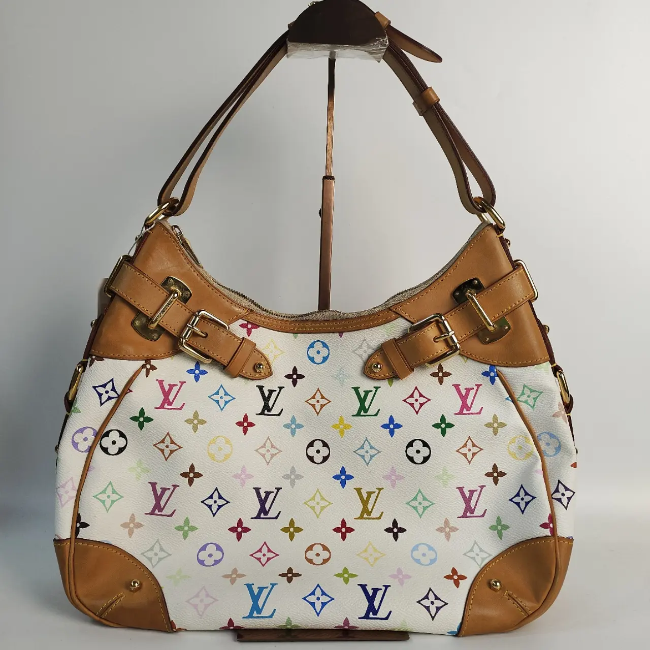 Pre-owned Louis Vuitton canvas Shoulder Bags Monogram White Multicolore Greta Shoulder Bag 【BF 12Z】XP02209