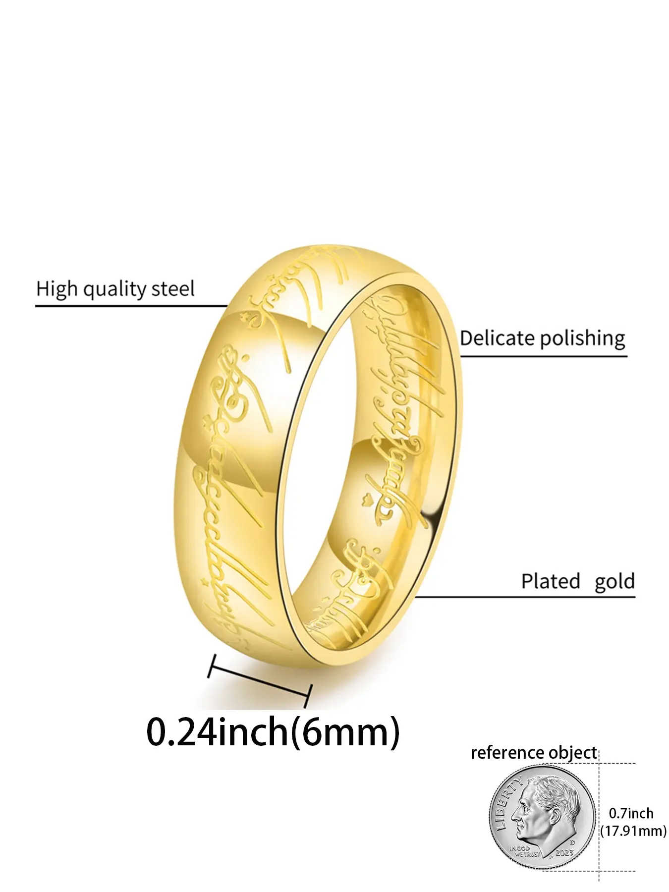 3-piece set of "The Lord of the Rings" themed, Instagram-style engraved rings, including men's and women's styles # Jewelry / Stainless Steel / Colorfast / Hypoallergenic / Couple / Festival / Party / Ideal Gift