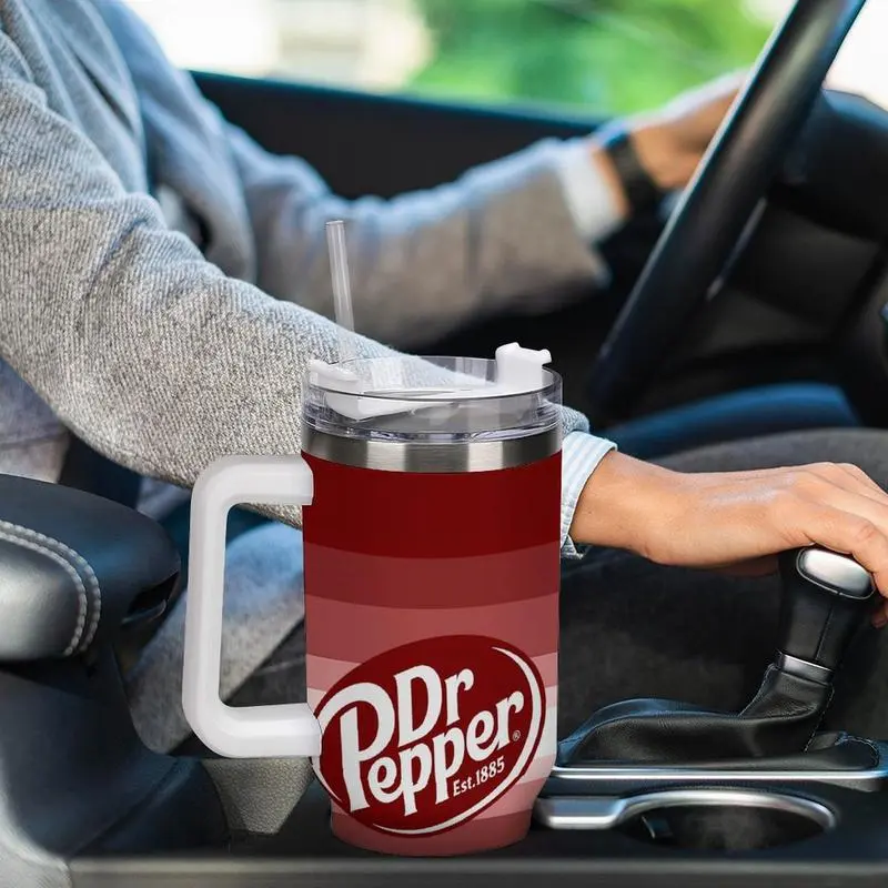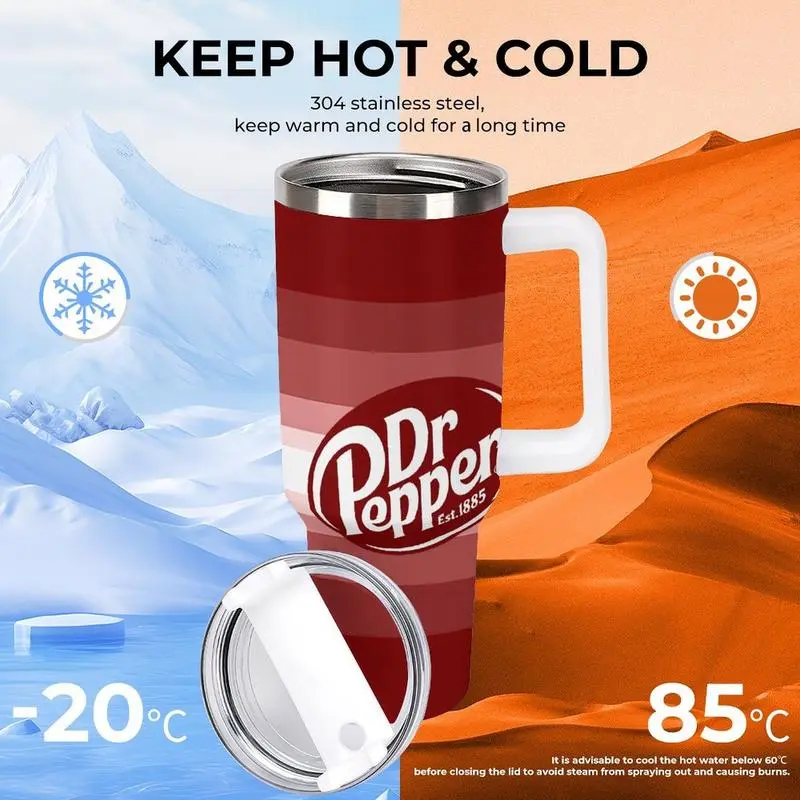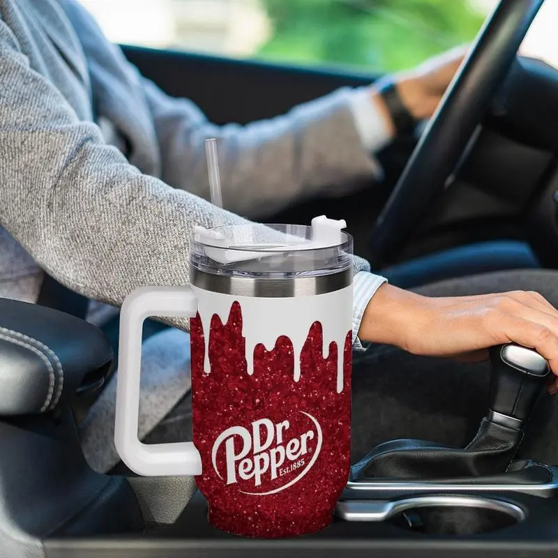The tumbler features a spill-resistant lid with a secure seal, along with a reusable straw for convenient sipping on the go. Its ergonomic handle provides a comfortable grip, while the slim base is designed to fit most car cup holders, making it perfect for commuting.