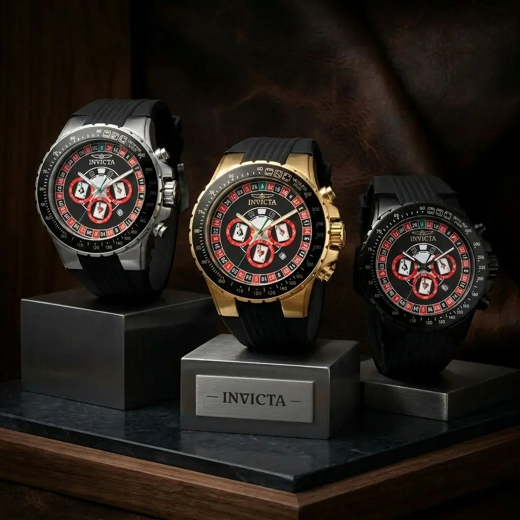 Take your style to the high-stakes table with the Invicta Men's 50mm Aviator Quartz Chronograph Roulette Dial Silicone Strap Watch. Combining classic aviation heritage with a bold, Vegas-inspired aesthetic, this timepiece is built for the man who isn't afraid to stand out.