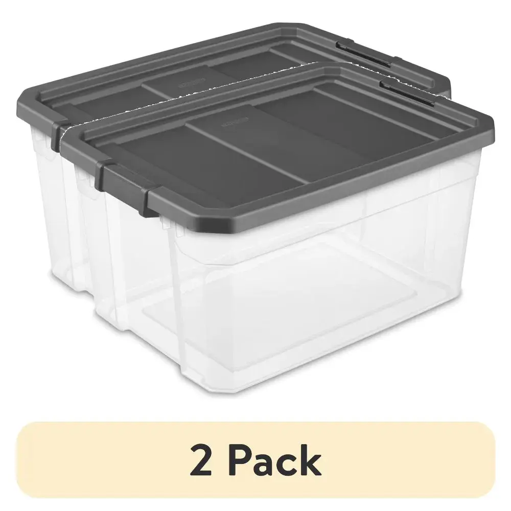 ·Sterilite 76 Quart Stacker Box, Durable Clear Plastic Storage Bin with Latch Lid, Dark Gray