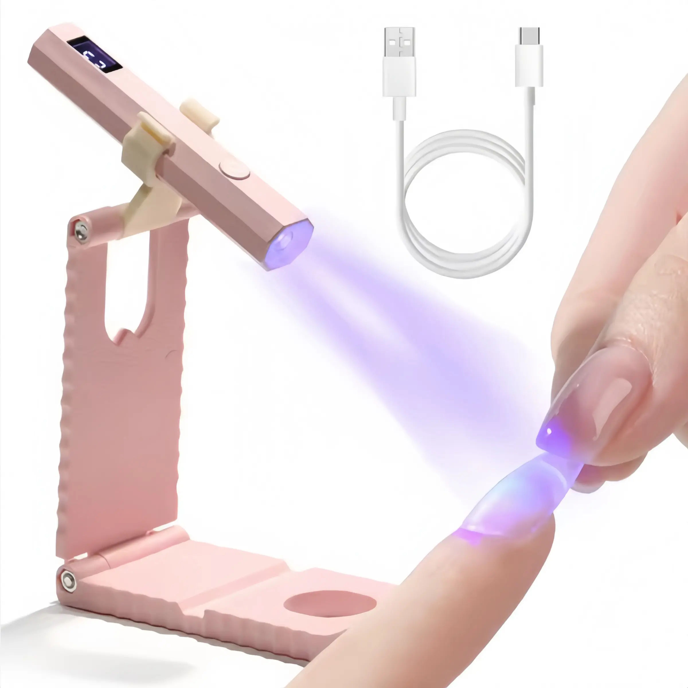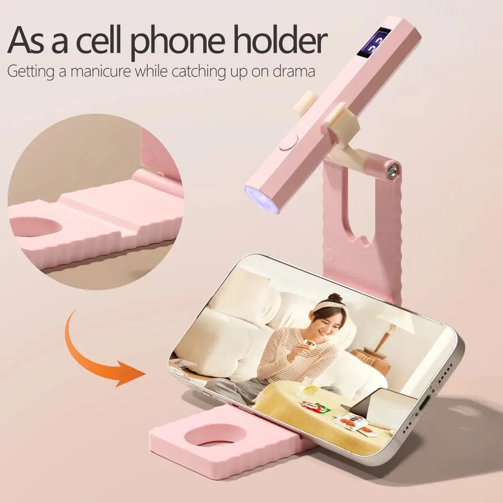 Professional LED Nail Lamp Set with Stand, Rechargeable Gel Nail Dryer with Digital Display & 20/60s Timer, Foldable Curing Light for Home Salon Travel Manicure