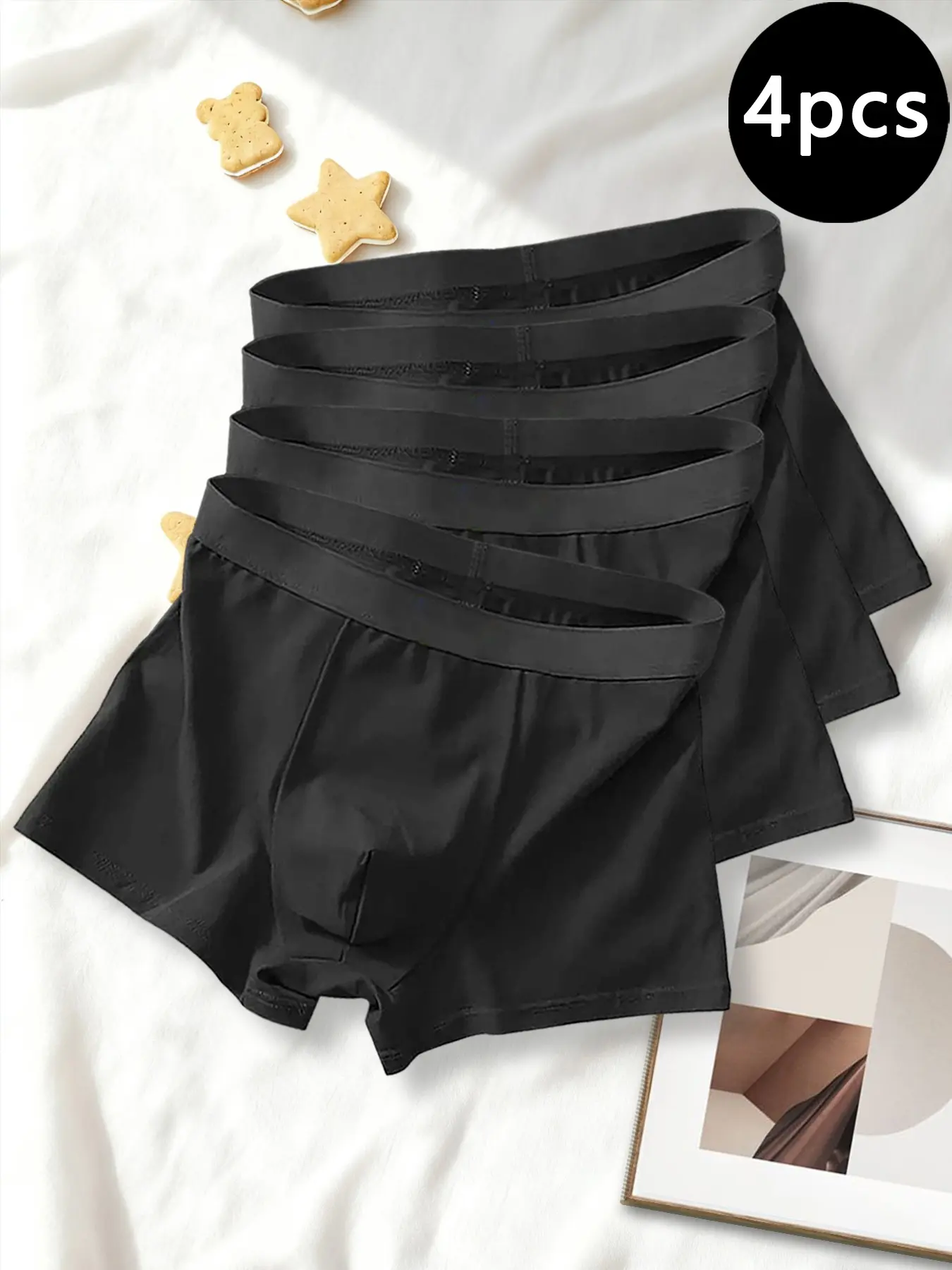 4-Pack Men's Boxing Underwear, Ice Silk Breathable Low-Rise Trunks, Comfortable Stretch Daily Wear, Solid Pattern, All Seasons