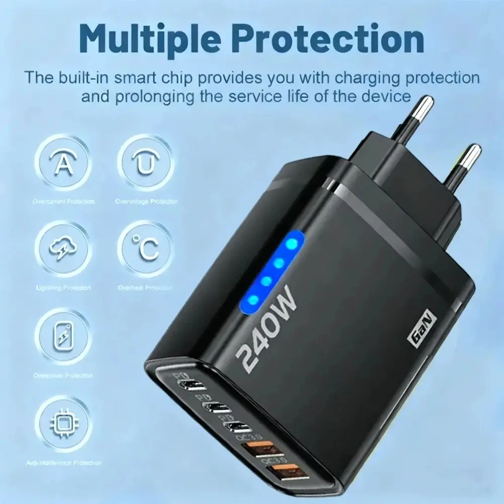 【 Powerful and Compact 】: Our 240W dual USB+3PD with LED charger is a powerful power supply in a small package designed to provide high-speed charging for your devices.