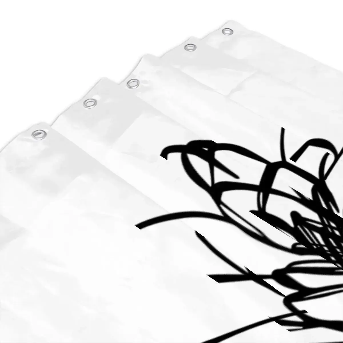 A crisp, calming shower curtain that brings minimalist botanical Zen to your bathroom. The large, hand-drawn lotus sketch floats on a clean white field, its loose black strokes feeling both modern and meditative. Lightweight polyester lets the design drape softly while drying quickly after each shower. Twelve reinforced buttonholes make hanging straightforward (hooks not included). This shower curtain settles into quiet mornings and slow evenings — a simple focal point that reduces visual clutter and invites a small moment of calm in everyday routine.