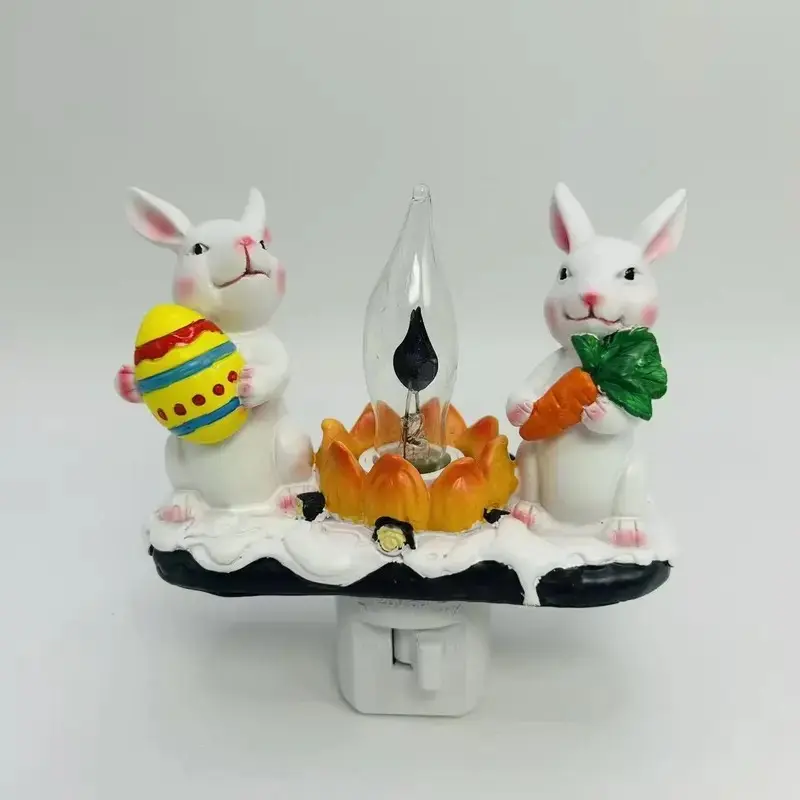 Rabbit Night Light, LED Bunny Campfire Decorative Lamp, Resin Ambient Easter Lights, Bedside, Holiday Night Lighting, Home Décor