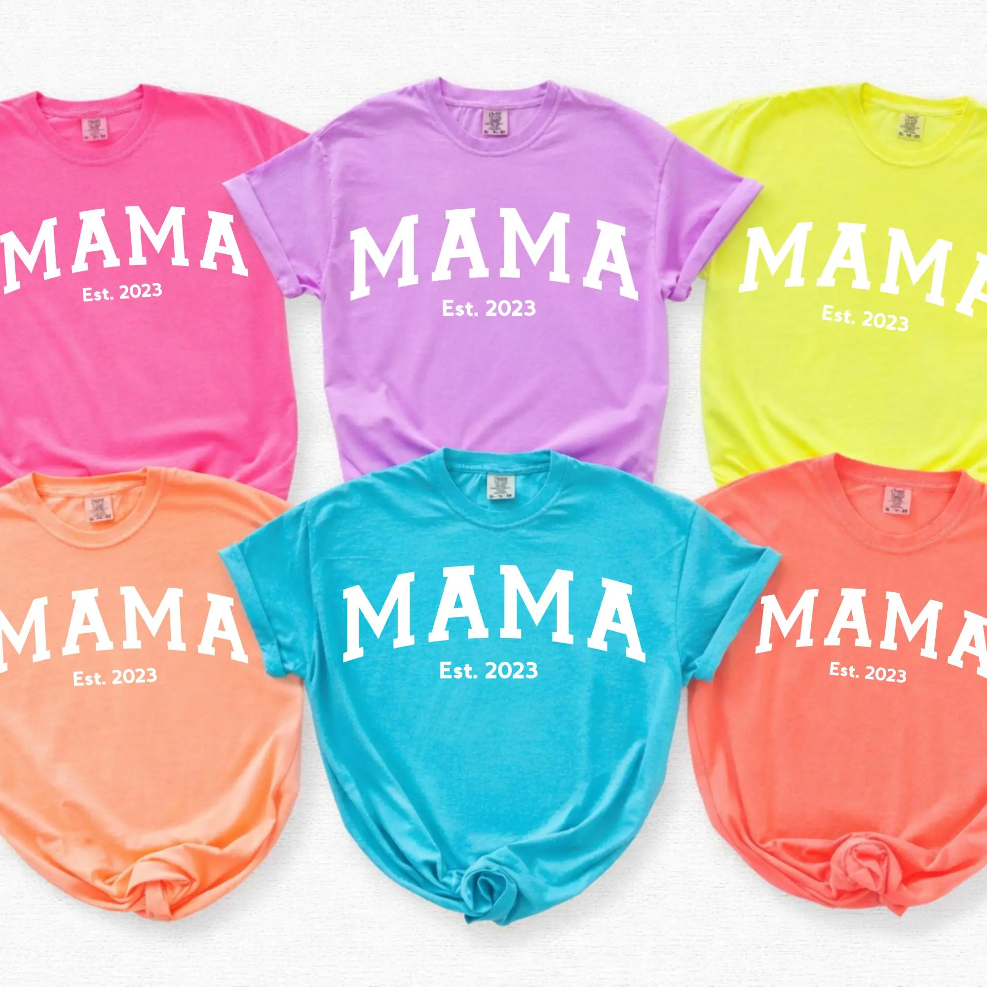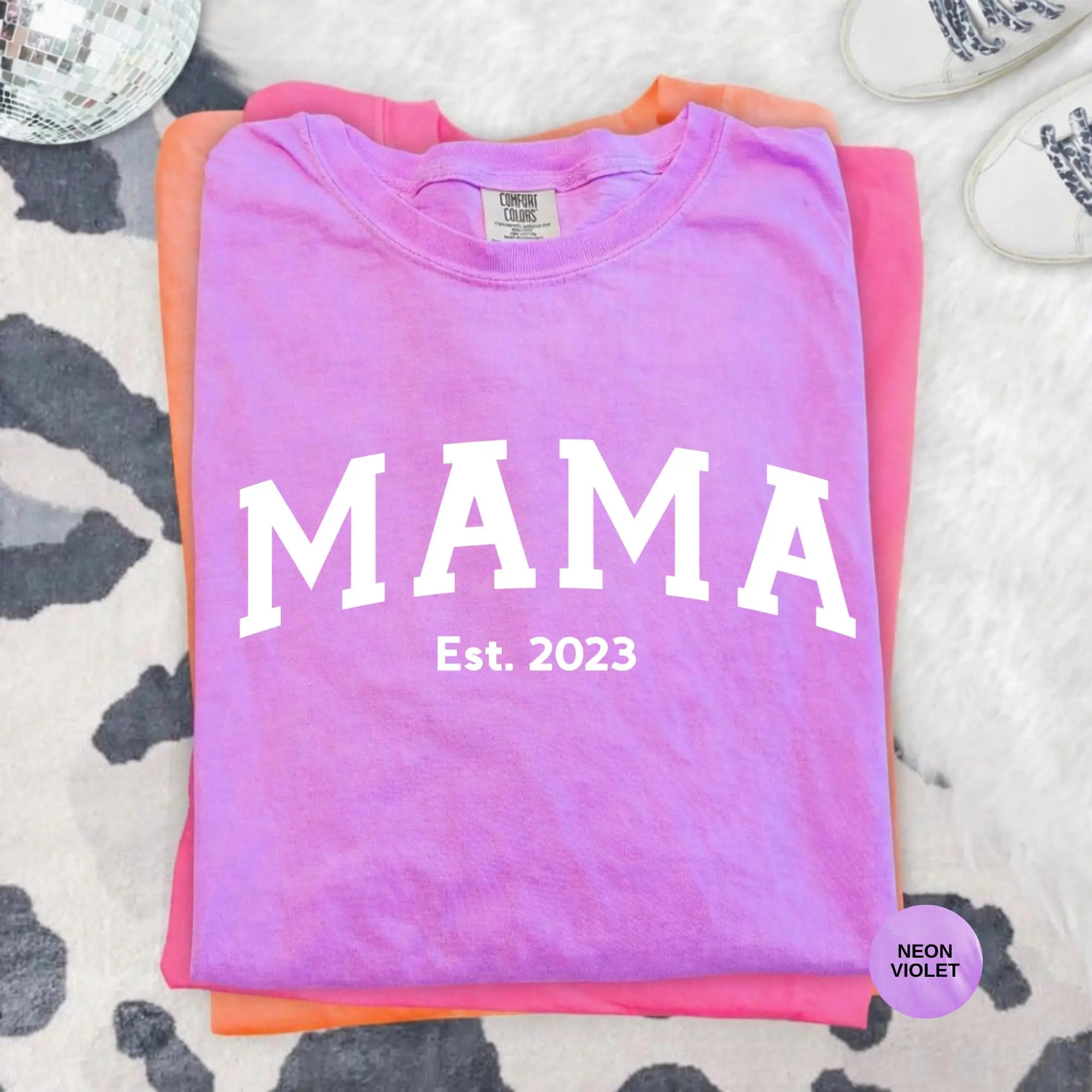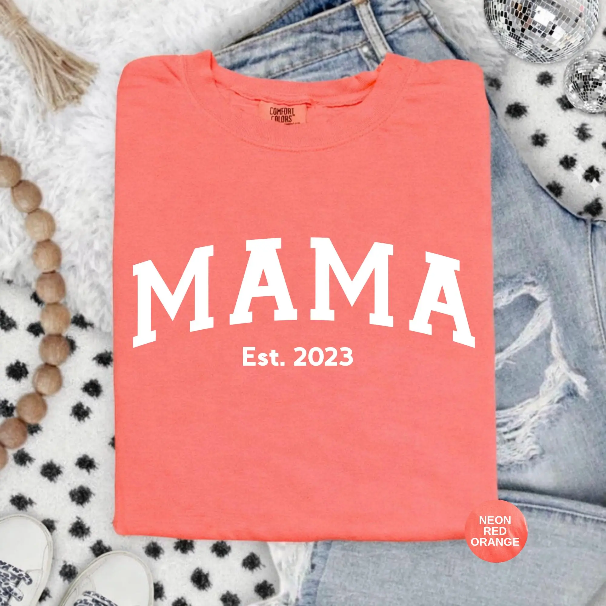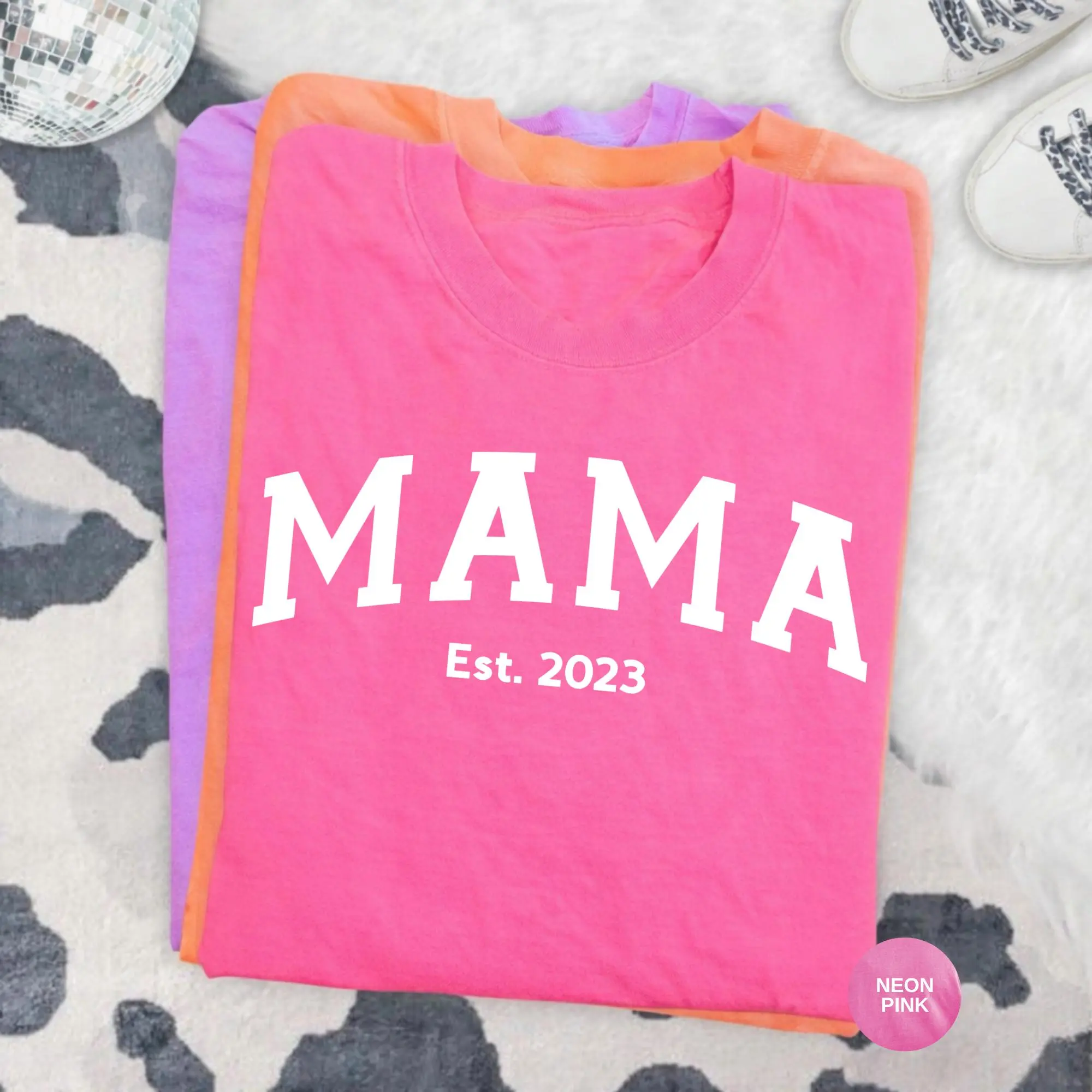 MAMA Est. Custom Tee Celebrate the year your favorite title began This custom “MAMA Est.” tee is the perfect everyday staple—made for busy moms who still want to look cute and feel comfortable.