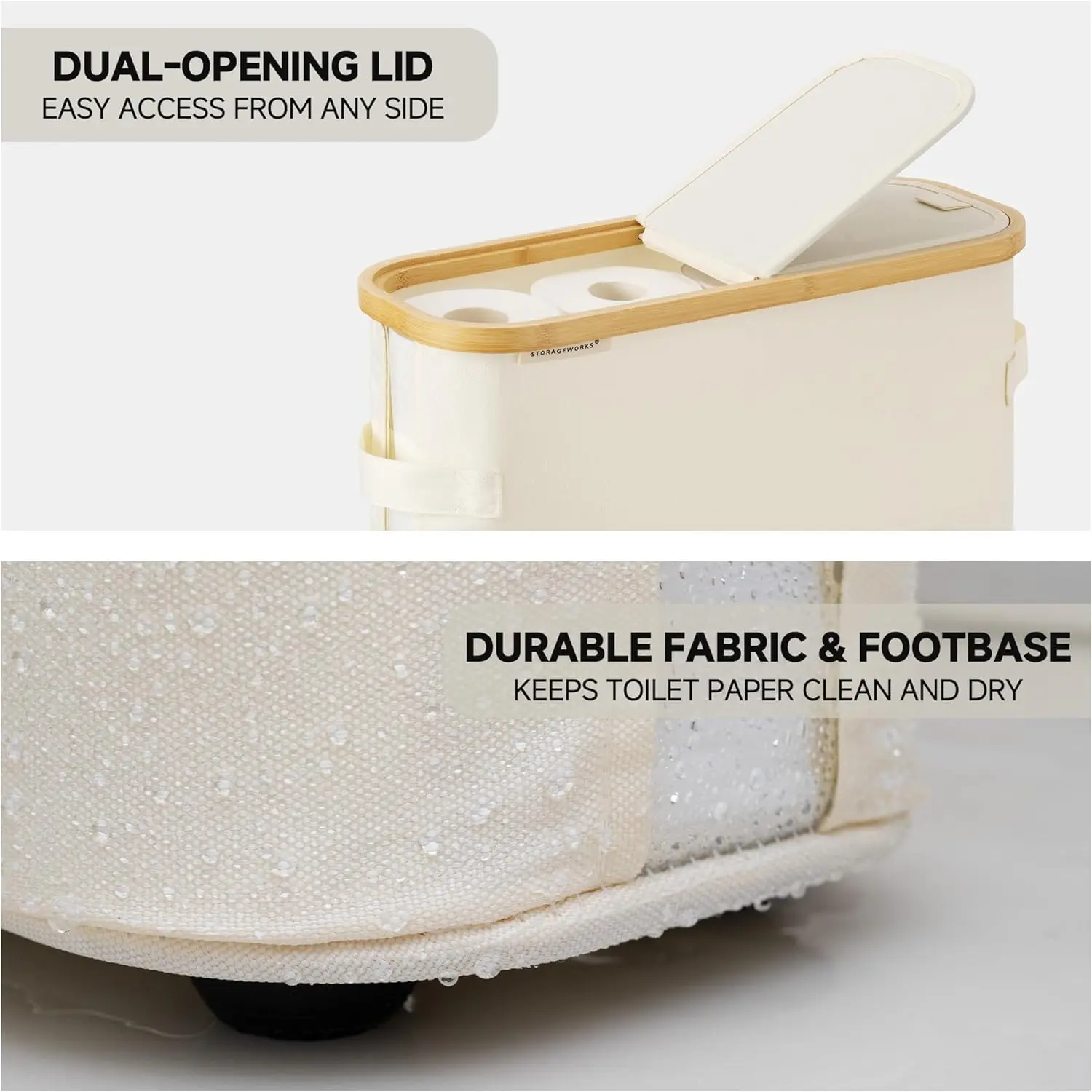 StorageWorks Toilet Paper Storage Baskets with Dual Flip Lids, Toilet Paper Organizer for Bathroom, Toilet Paper Container with Side Pocket, Holds 9 Mega or 12 Regular Rolls, Medium, Beige