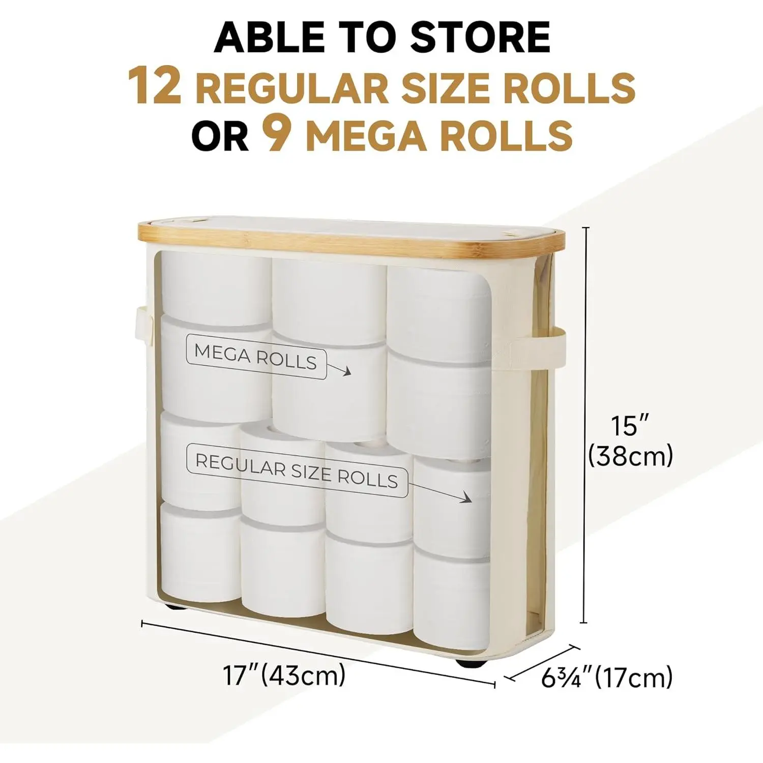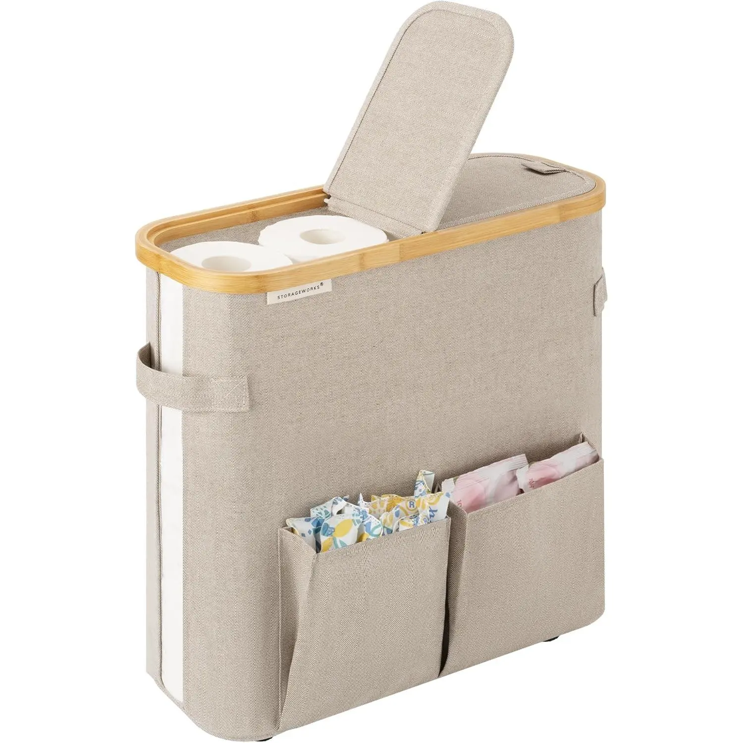 Durable stitched grips let you move the bin comfortably, even when it's fully loaded with toilet paper and other essentials.