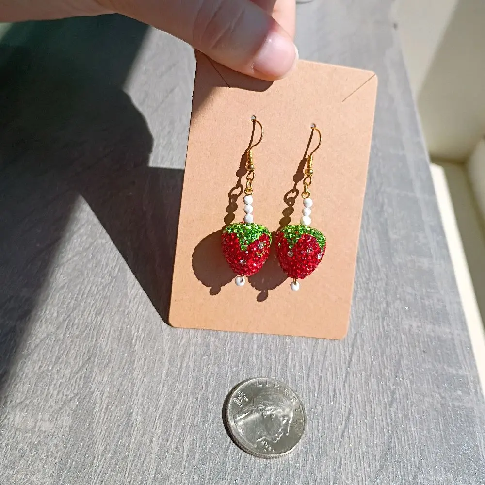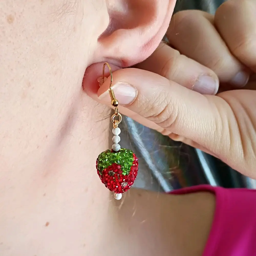 ✨ These earrings feature charming strawberry beads with white Howlite crystal beads. Perfect for adding a touch of nature-inspired elegance to any outfit. The unique shape and color make them a standout accessory, the strawberry beads sparkle in the sunlight.