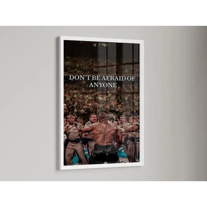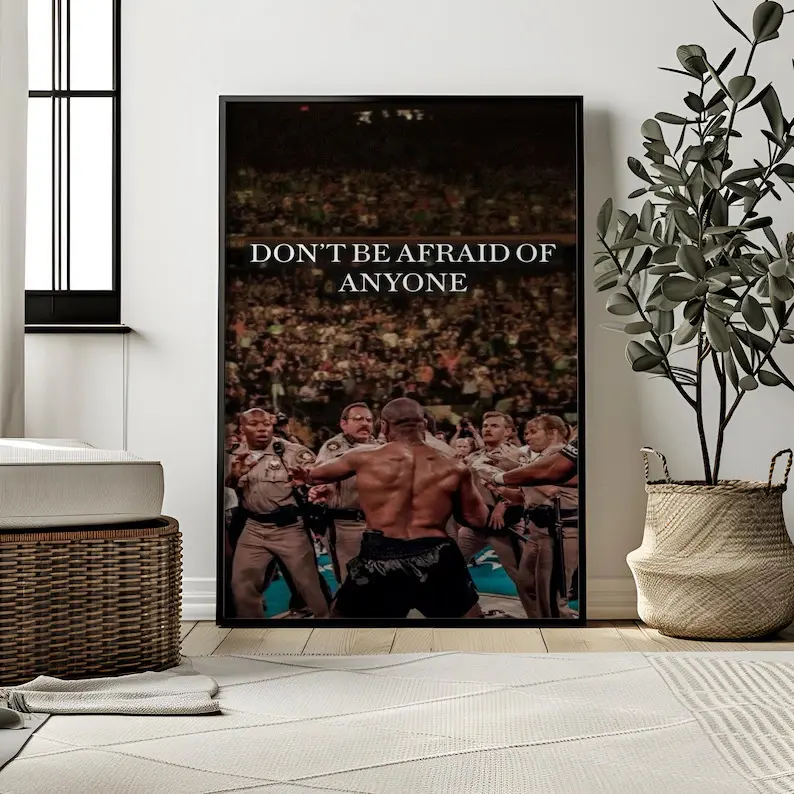 Bring the raw power and unbreakable spirit of "The Baddest Man on the Planet" into your home with this striking Mike Tyson motivational poster.Captured in a moment of intense ring drama, this print features Iron Mike’s formidable presence surrounded by security, perfectly encapsulating the legendary intimidation and fearlessness that defined his career.Ideal for athletes and those who demand excellence, this piece adds a bold layer of athletic history and grit to any modern interior.