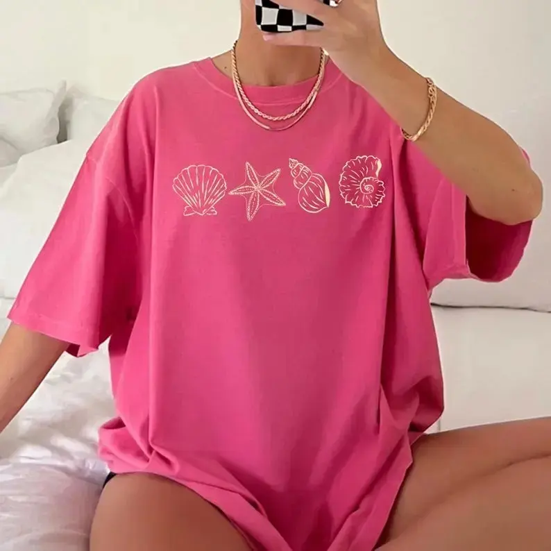 Comfort Colors SeaShell TShirt, Preppy Beach T-Shirt, Gift for Teen Girls, Coastal Aesthetic Tee, Oversized Ocean Lover SeaShell T-Shirt – TREND WEAR USA