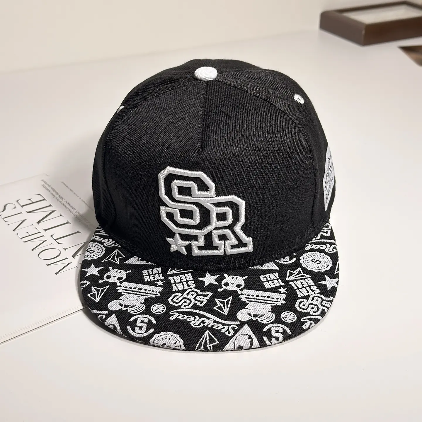 Cross-border new trendy street hip-hop hat with letter print, flat brim, unisex, adjustable - SR model