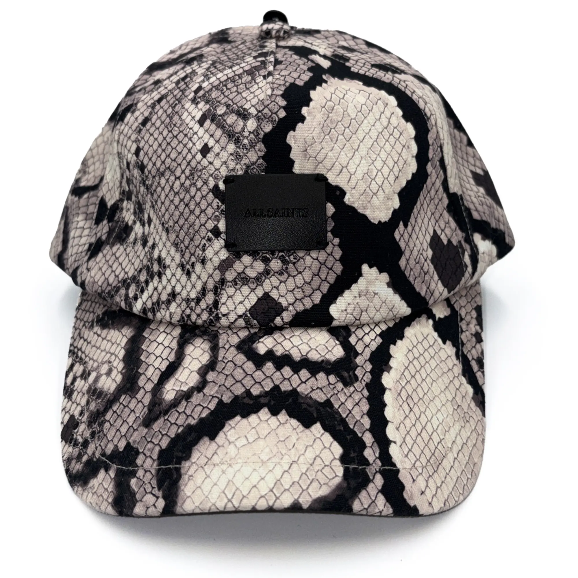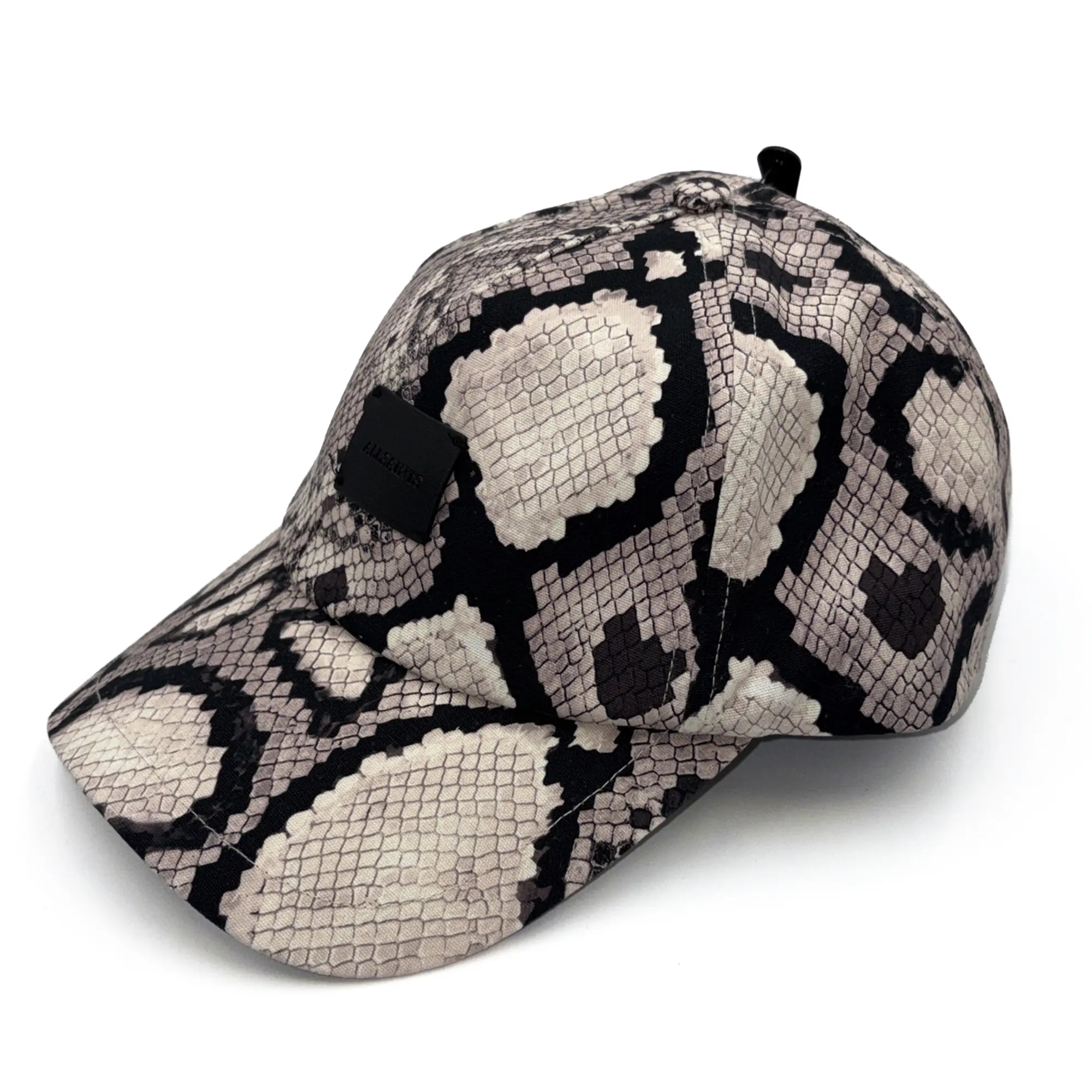 -A modern baseball cap with an all-over snake-inspired print for standout style.