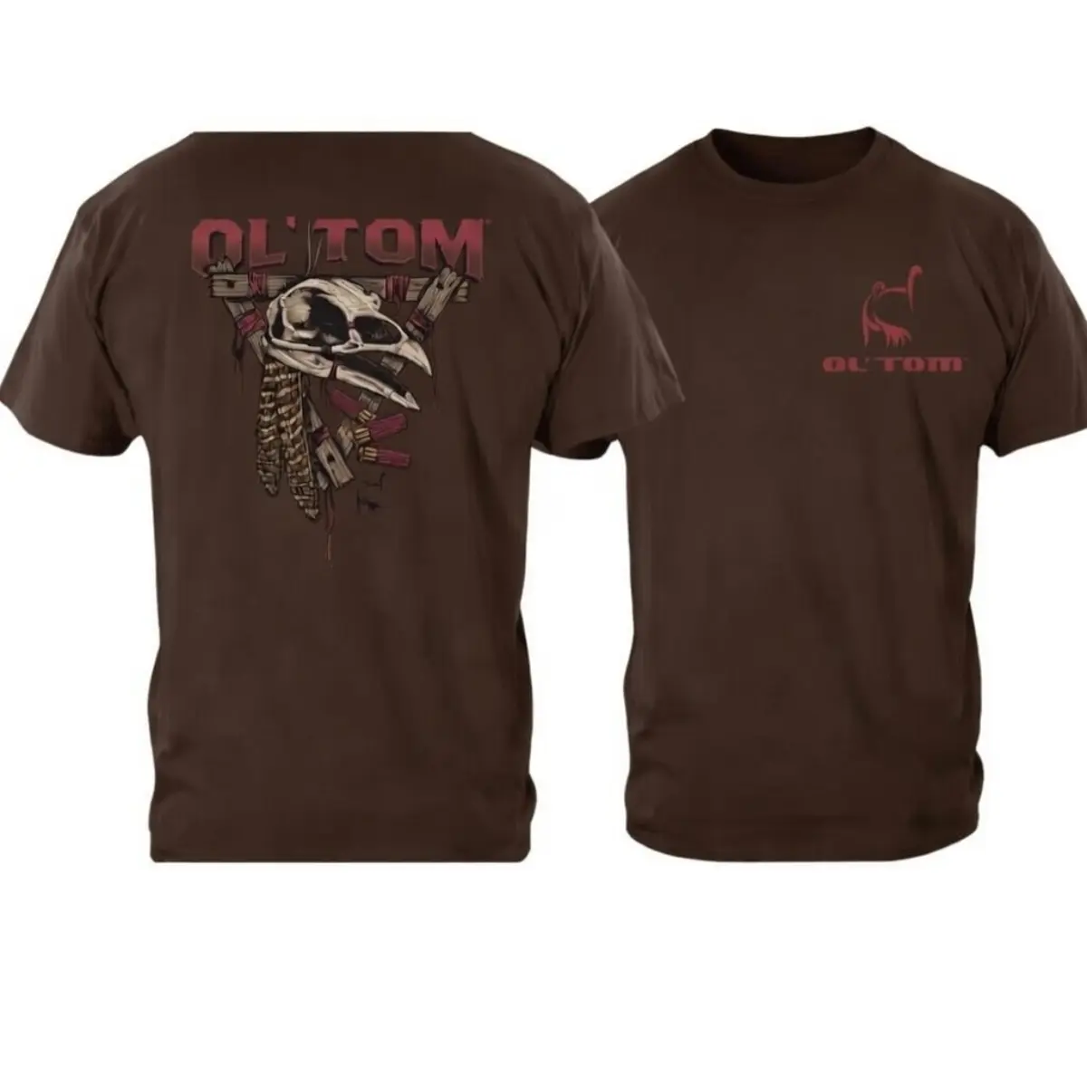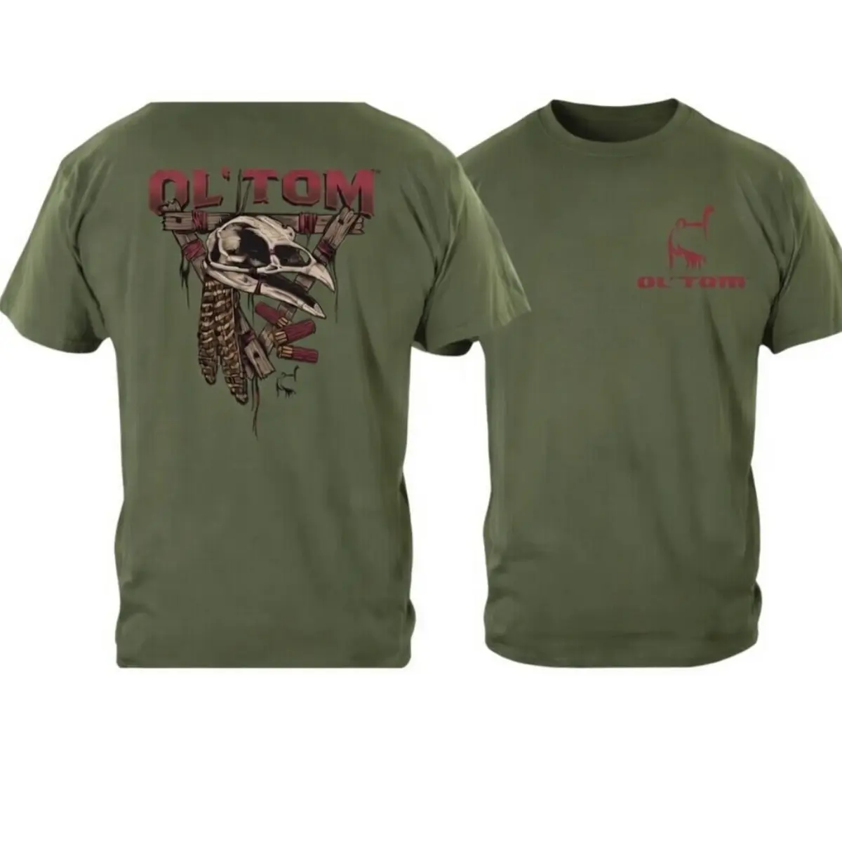Ol’ Tom Skull Turkey Hunting Shirt - Turkey Hunting - Vintage Turkey Skull Graphic Tee, Hunter Gift for Men, Outdoor Camo Style T-Shirt, Rugged Hunting Gear