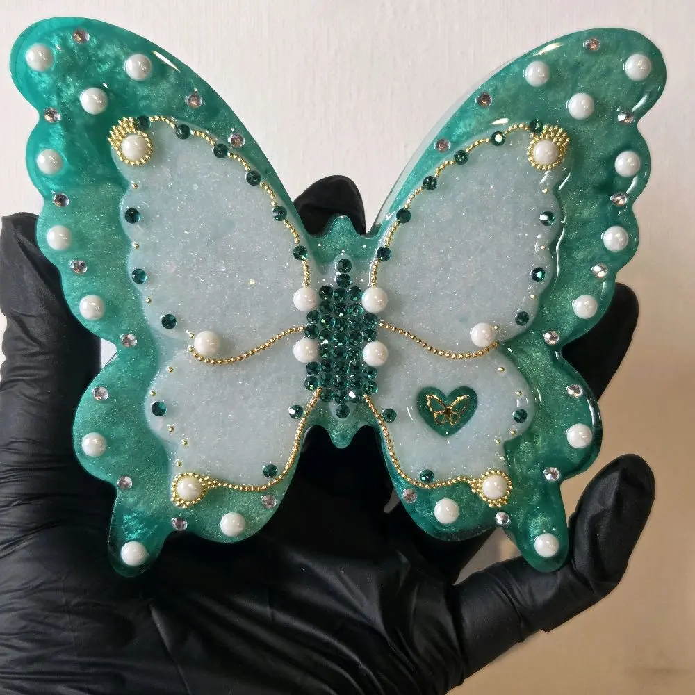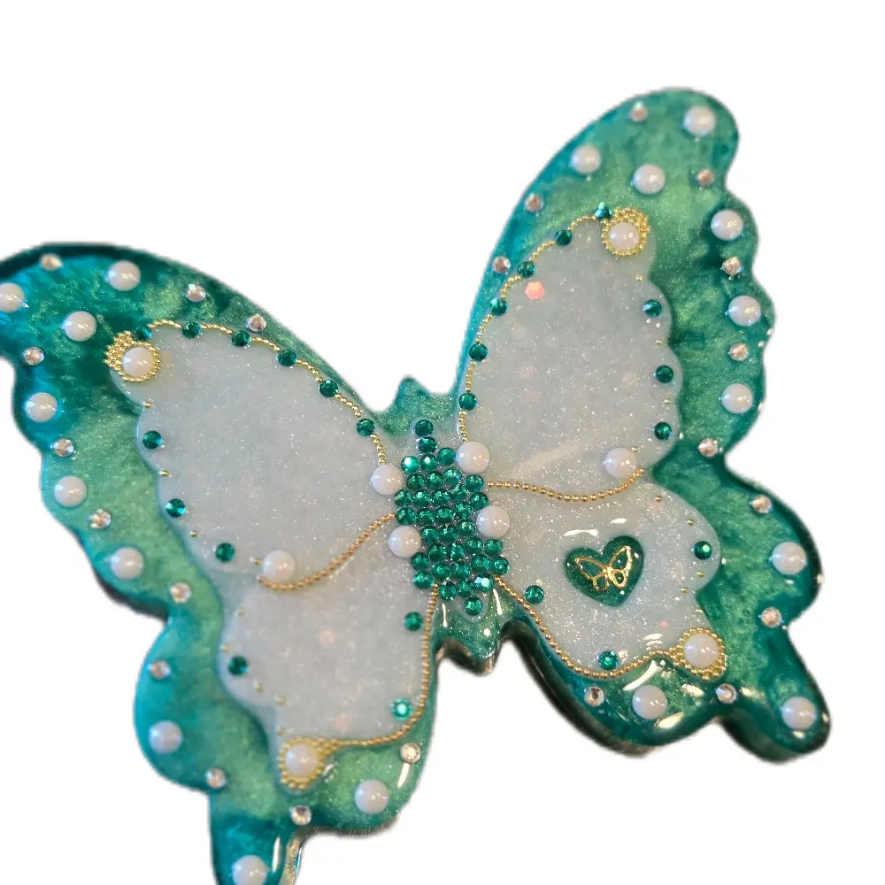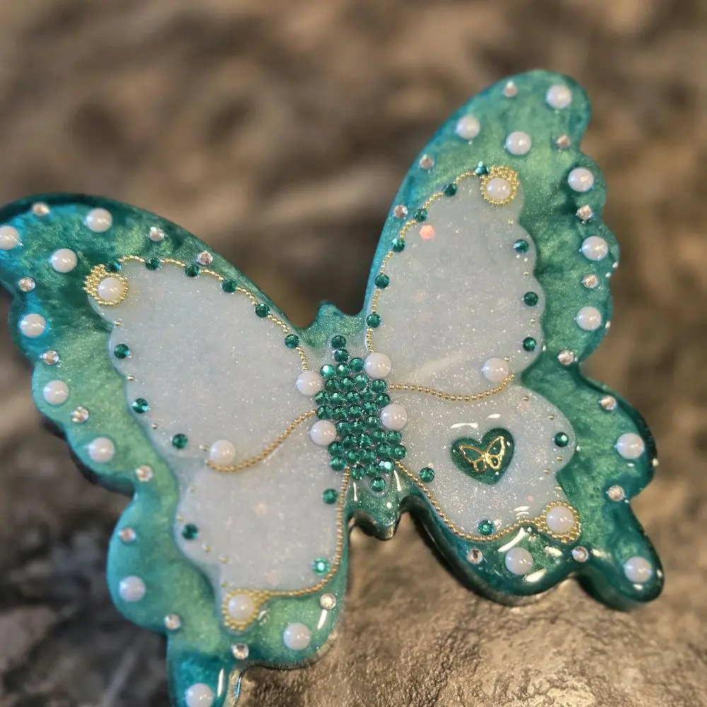·Teal & White Resin: This butterfly features a striking teal and white resin design. The colors blend beautifully, creating a visually appealing piece.