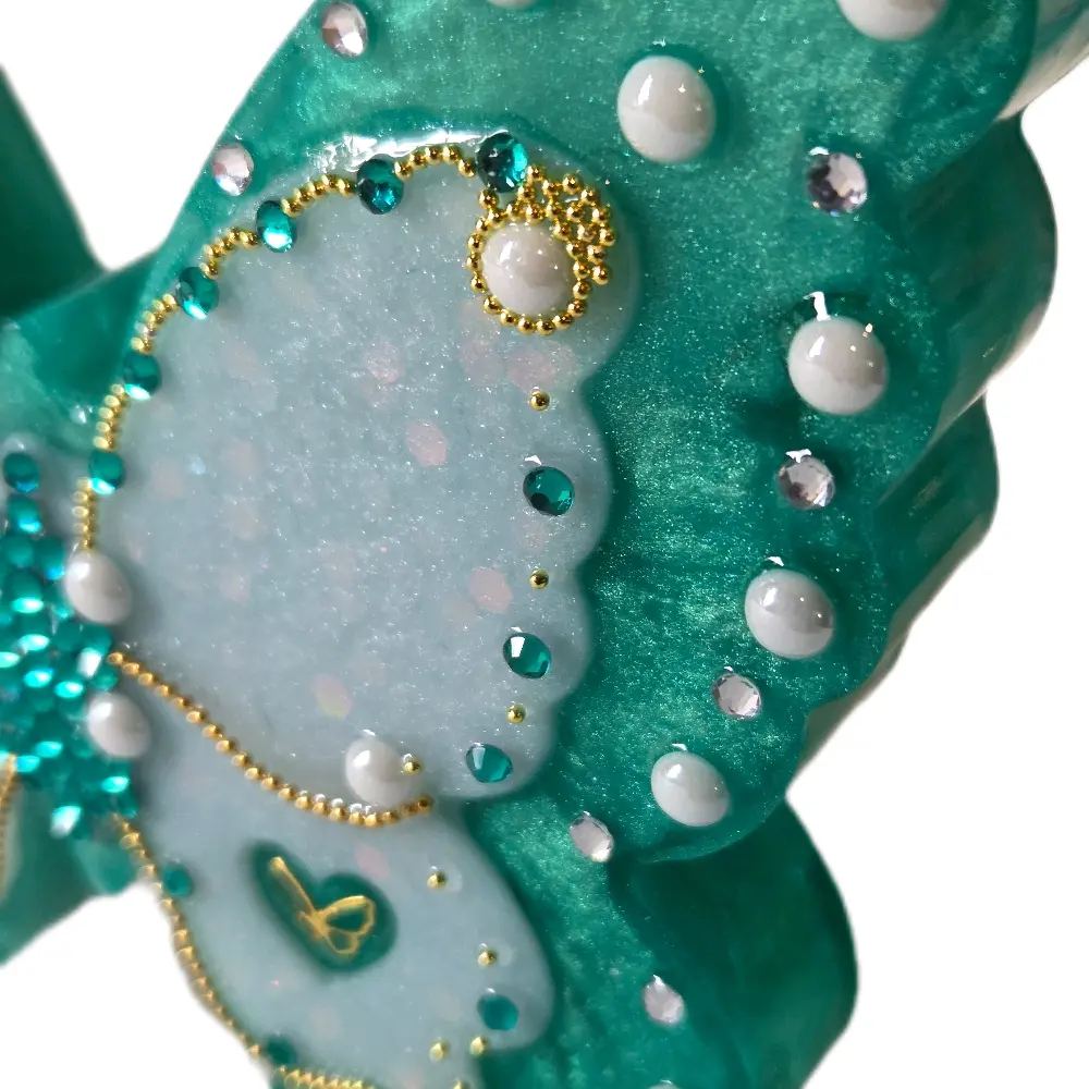 🌟 Resin Butterfly Teal & White With Glitter And Goldtone Accents, Rhinestones 🌟