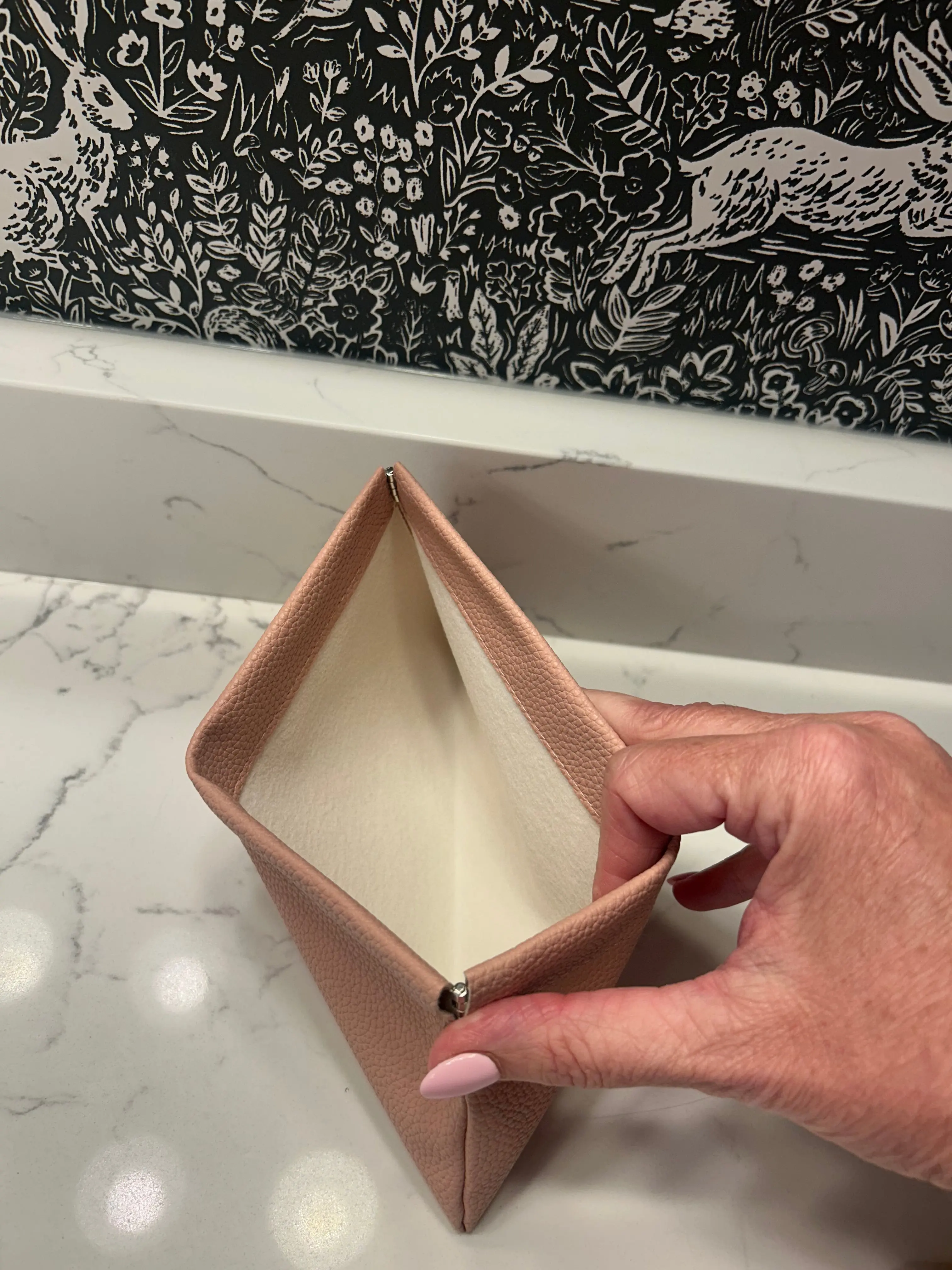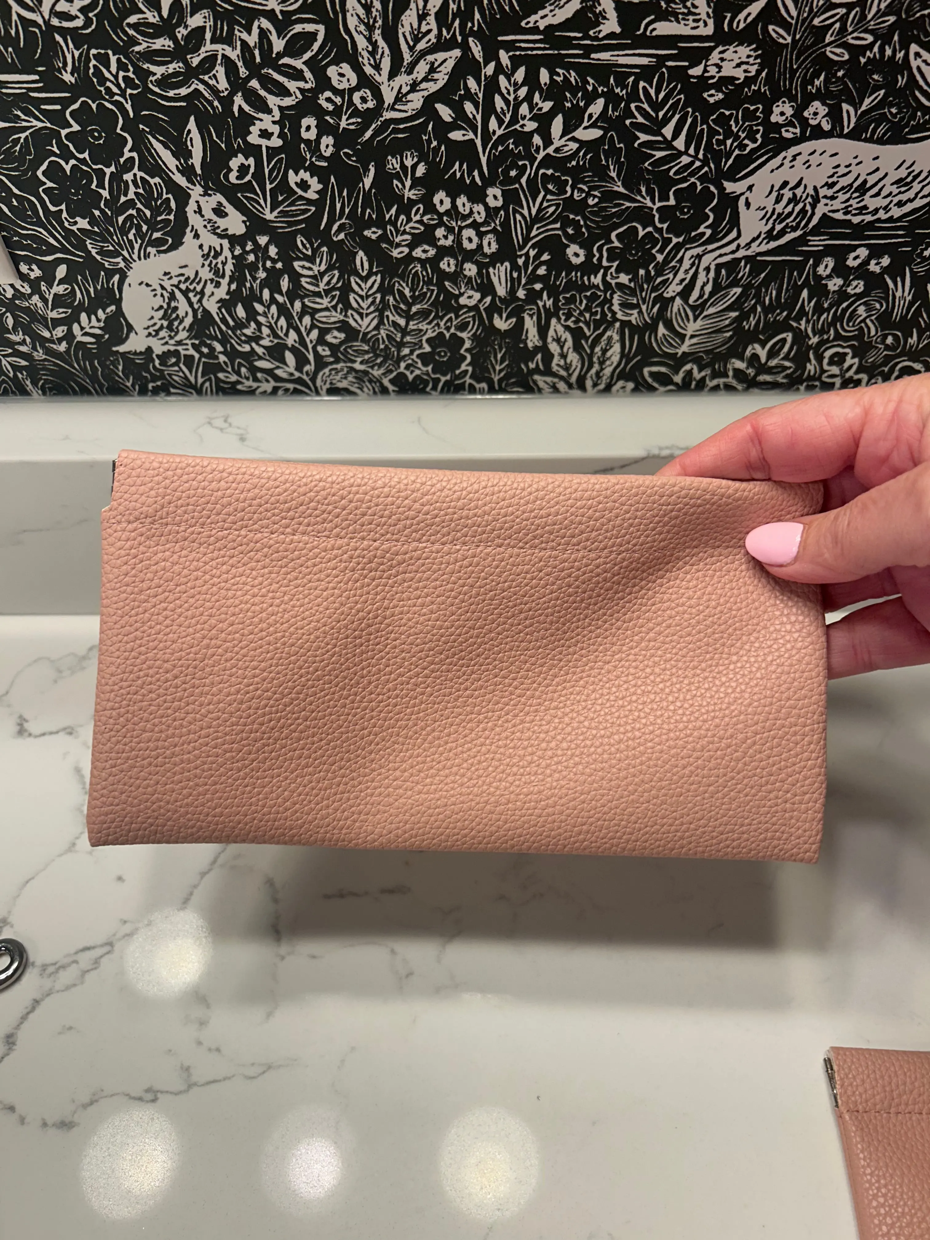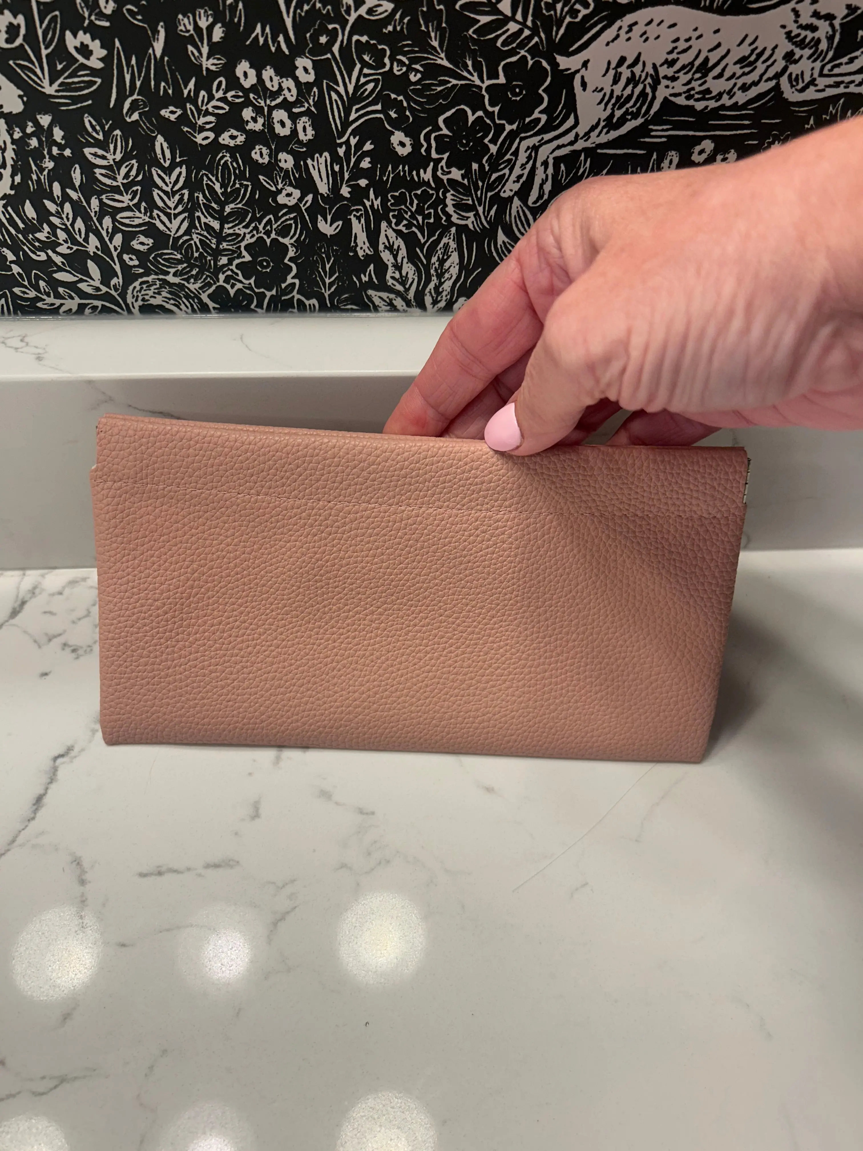 4.33 inches x 7.87 inches pink synthetic kiss closure pouch.